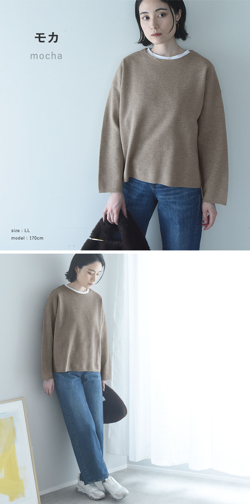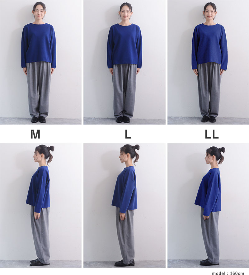 ややコンパクトなサイズ感のため、カジュアル派さんは大きめ、すっきり派さんは普段のお洋服と同じサイズがおすすめです。