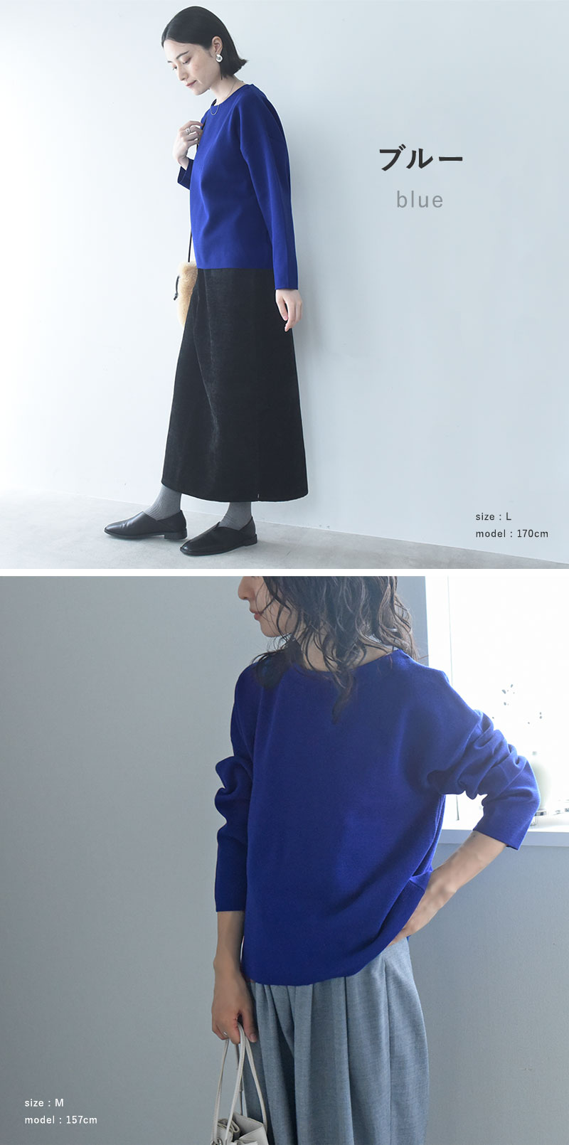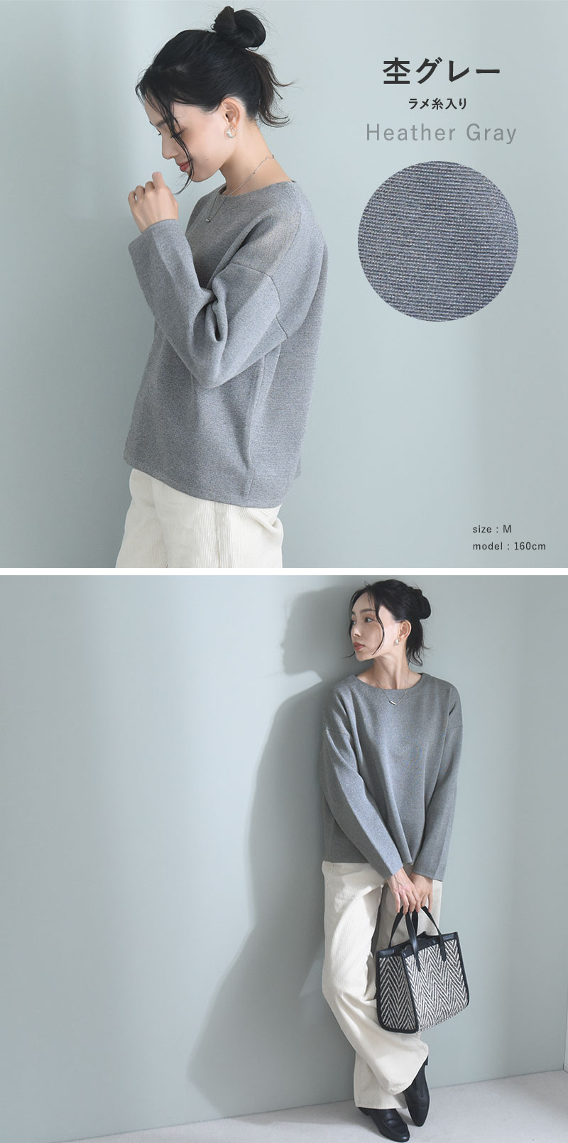 上品見えのボートネックレイヤードもしやすいシンプルなボートネック。開きすぎないので顔回りをすっきり品よく見せてくれます。
