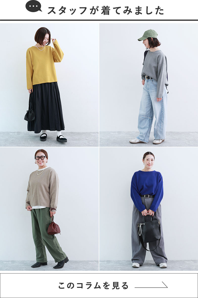 異なる身長のスタッフが着用してみました。サイズ感やコーディネートのご参考にどうぞ。