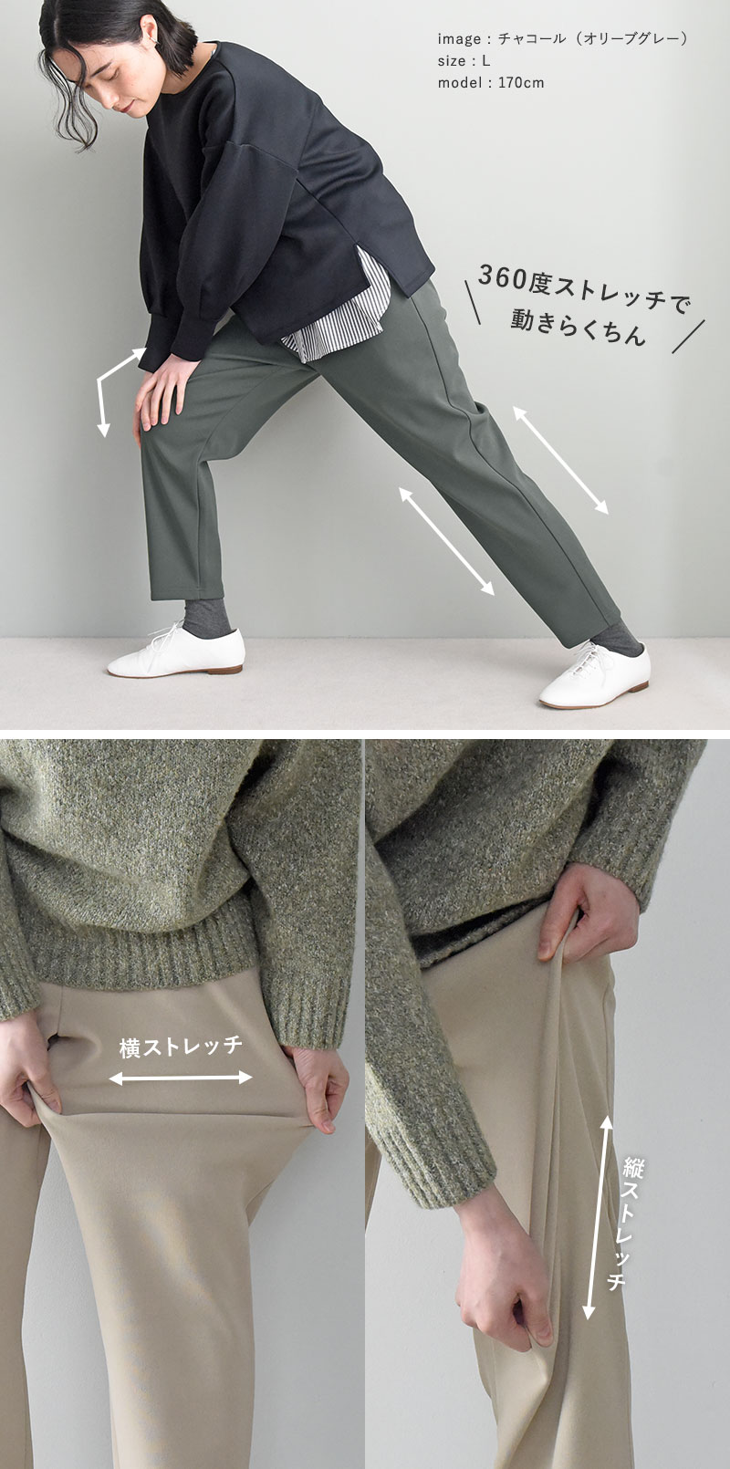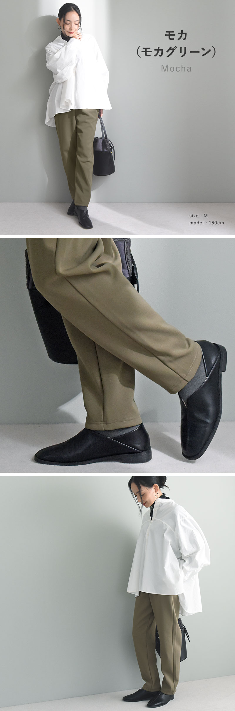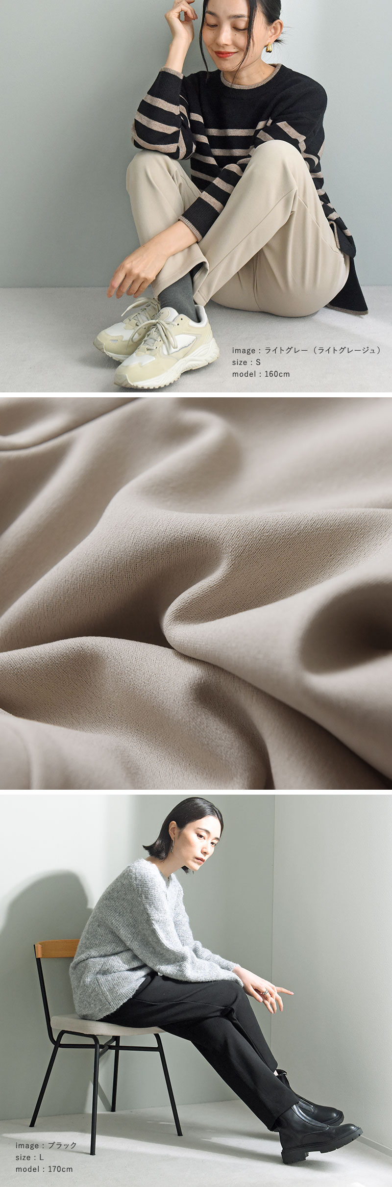 まるでルームウェアのような穿き心地ながら、着てみるとすらっと美しいシルエット。この絶妙なバランスが人気の秘密なんです。