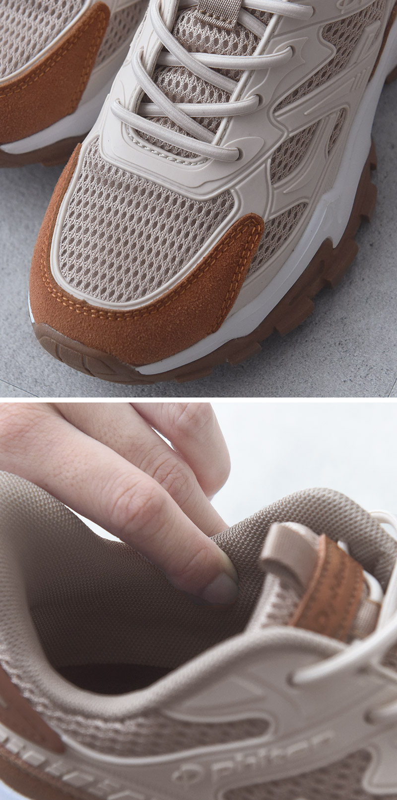 メッシュ素材で通気性よくアッパーはメッシュ素材になっていて通気性抜群。蒸れにくく、快適な履き心地を実現しています。
