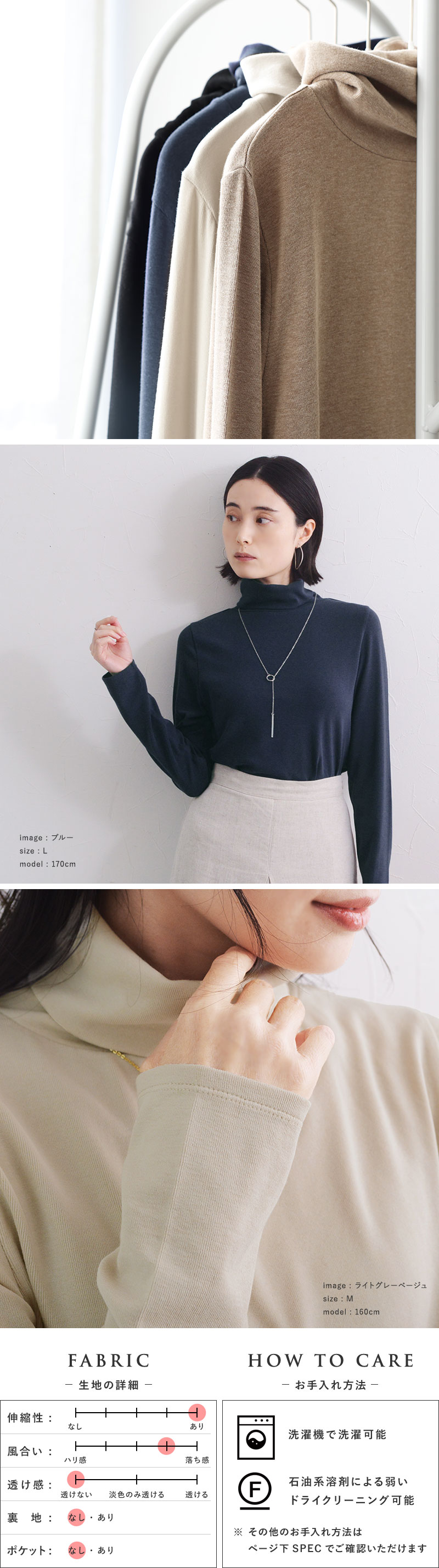 しっとりと柔らかな肌触りに思わずうっとり。チクチク感も一切なしで素肌がよろこぶ、タートルネックカットソーです。