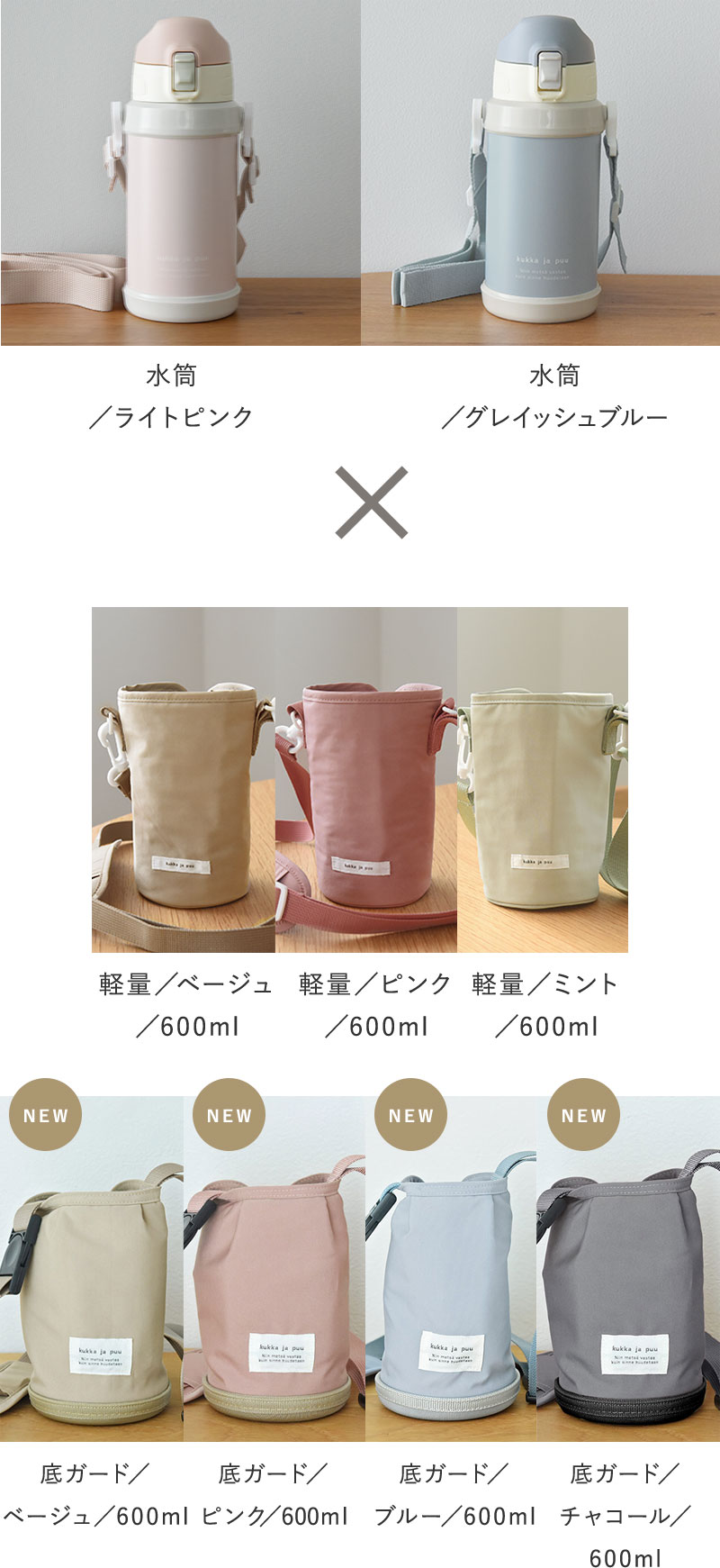 専用の水筒カバーは、軽さ重視派さんに嬉しい「軽量タイプ」と、傷からしっかり守りたい方にぴったり「底ガードタイプ」からお選びいただけます。