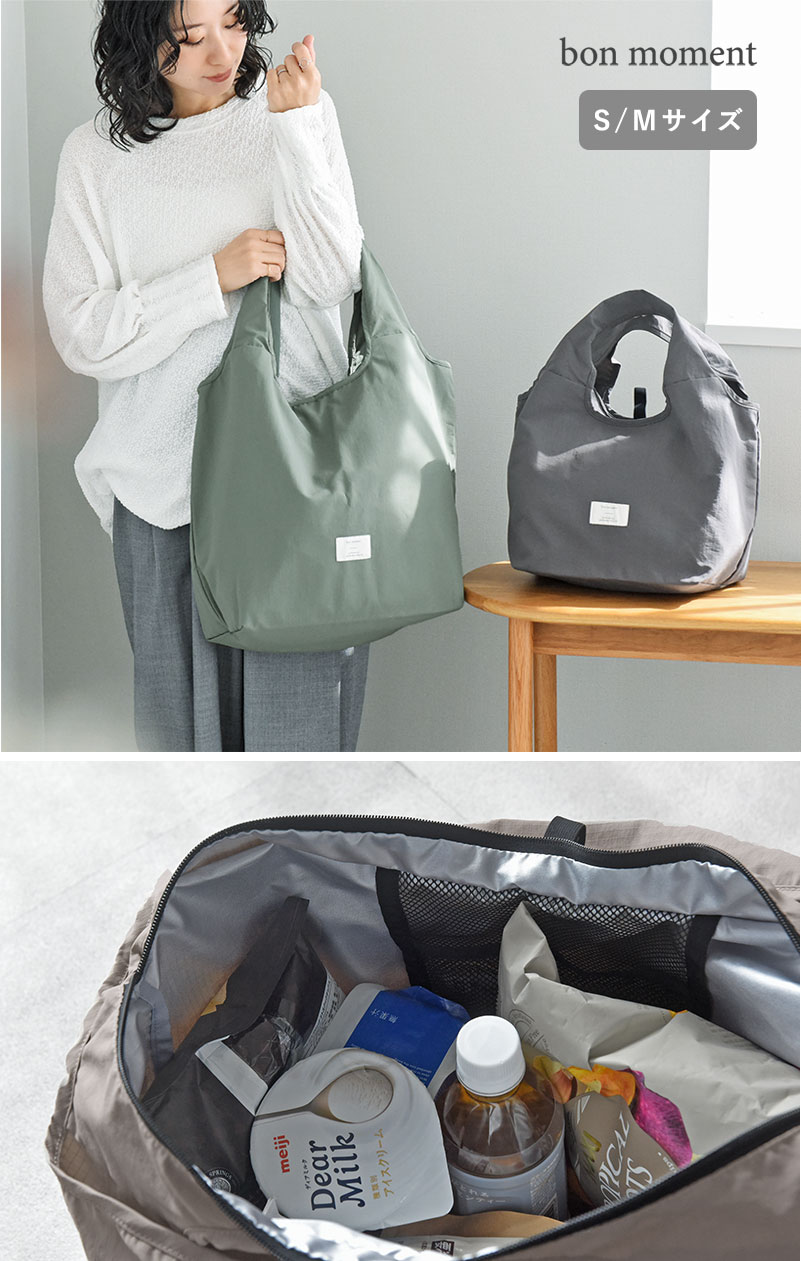 bon moment(ボンモマン)の「マチの大きなエコバッグ」シリーズの使い勝手はそのままに。内側を保冷素材にした、夏に大活躍なエコバッグをお届けします。