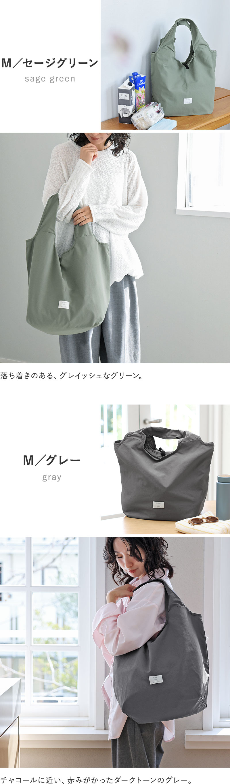 さらにMサイズには、爽やかな印象のセージグリーンとグレーが仲間入り。バリエーションが増えて、選べる7種類になりました。