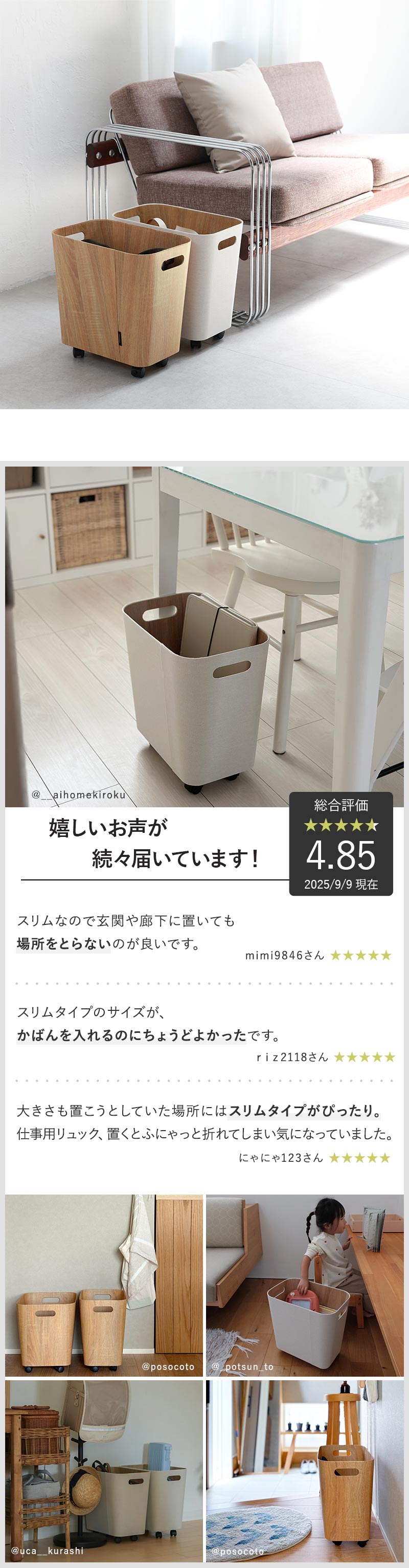 荷物の一時置きにちょうどいい「キャスター付き収納」に、幅24cmのスリムタイプが登場。玄関やリビング、オフィスやお家のワークスペースにも置きやすいサイズ感です。