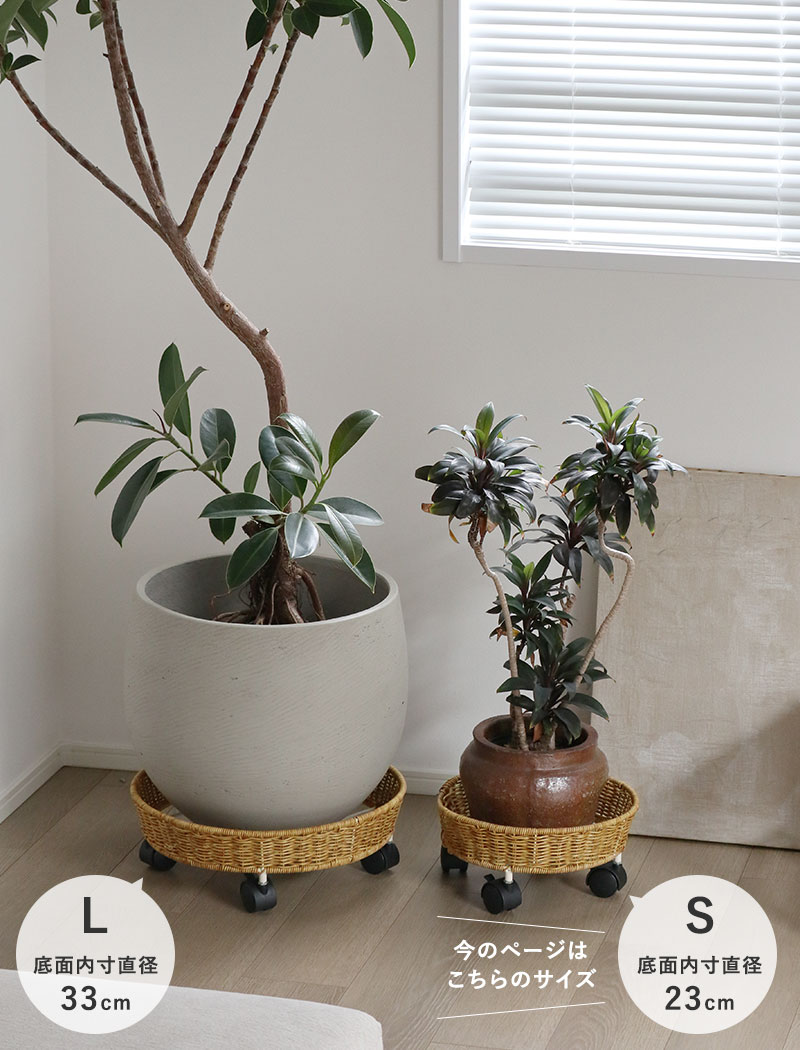 こちらは底面内寸直径23cmのSサイズ。大きめの鉢をご使用の方は、底面内寸直径33cのLサイズもお選びいただけます。