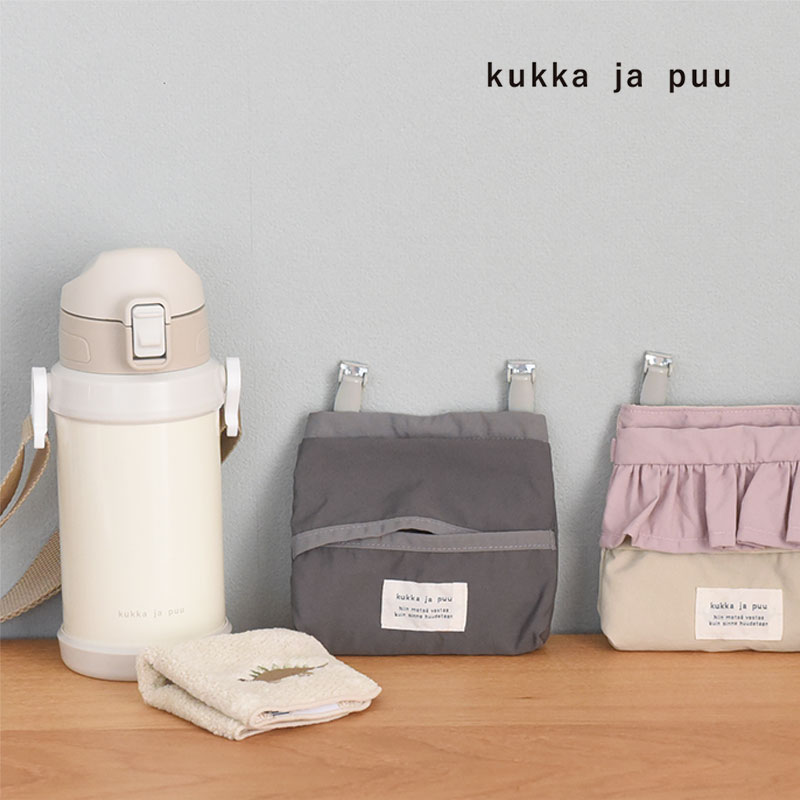 kukka ja puu(クッカヤプー)の「マスク・ティッシュケース」は、幅広い年齢のキッズが持ちやすい、コンパクトなサイズ感。前面はティッシュケースになっていて、メインポケットには畳んだマスクやハンカチを入れておけます。