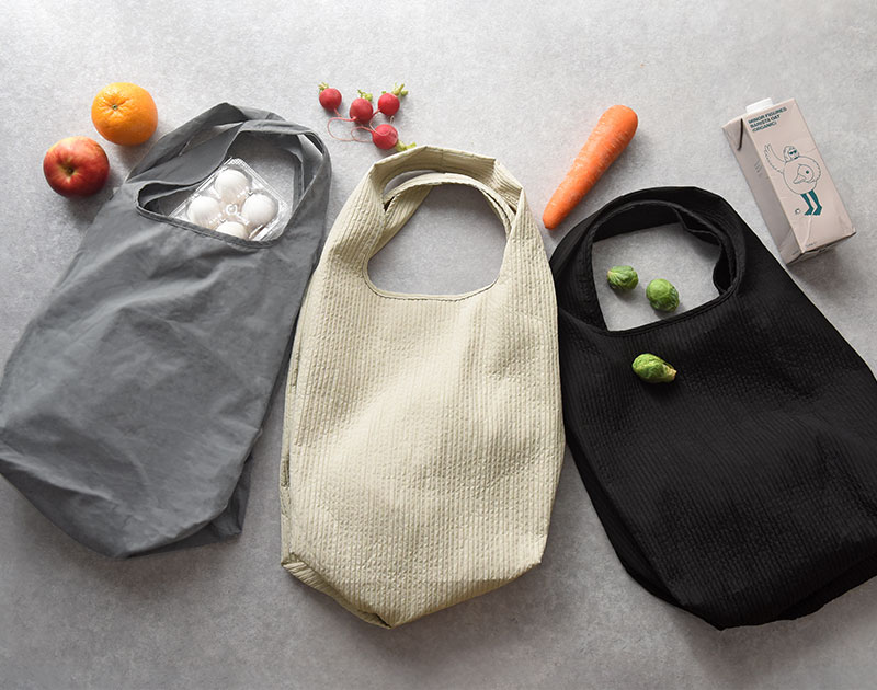色々なエコバッグがある中で、こちらはスーパーでの袋詰めのしやすさを追求。マチの形が崩れにくいから、詰めた食材がしっかり安定。エコバッグの中に積んだ食材の「雪崩」が起きにくいバランスのいいカタチです。