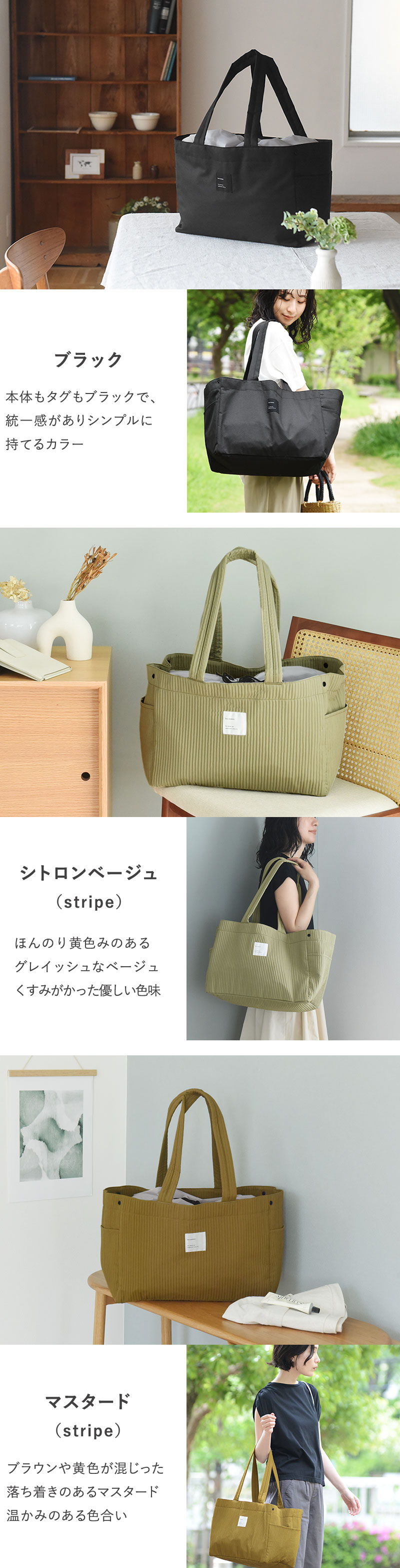 シンプルなデザインなので、食材の買い出し以外にも、ピクニックなどのアウトドアシーンにもマッチ。お弁当箱や水筒、ピクニックシートを入れて運動会に持っていくのにも便利です。