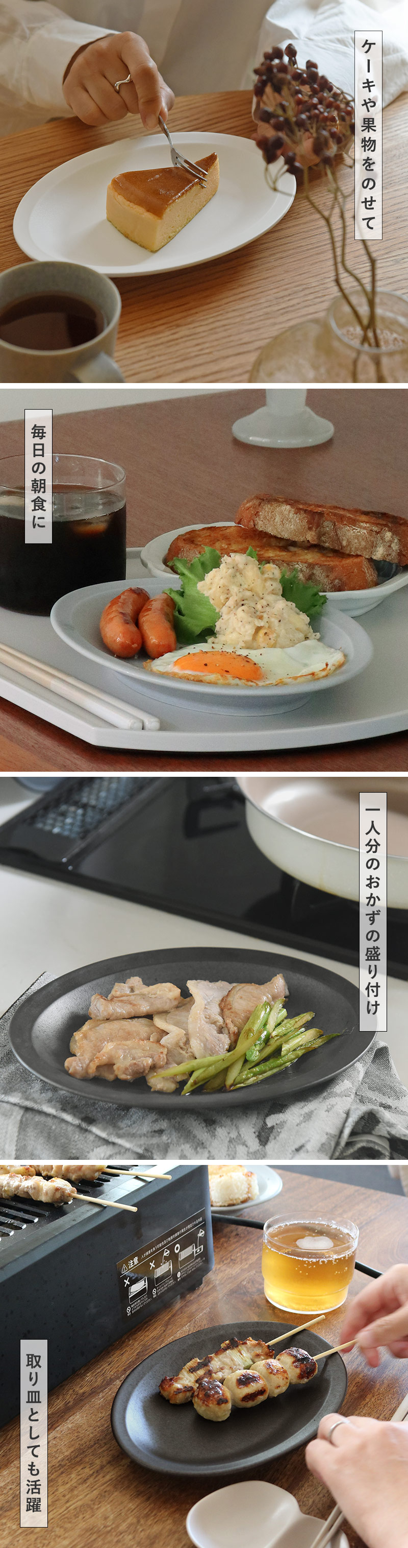 こちらの21cmプレートは、朝食プレートからデザート皿、取り皿としも◎。和洋折衷どんな気分の日にもしっくりくる定番の器です。