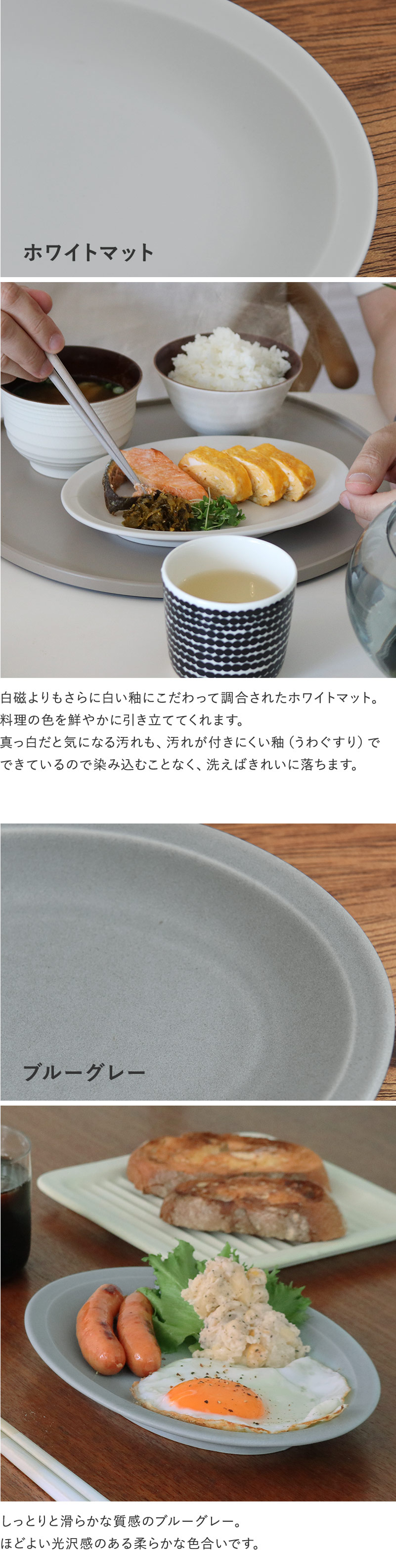 ベーシックに見えて、実は計算しつくされた姿かたち。いつもの料理を、ぐっとこなれて見せてくれるオーバルプレートです。