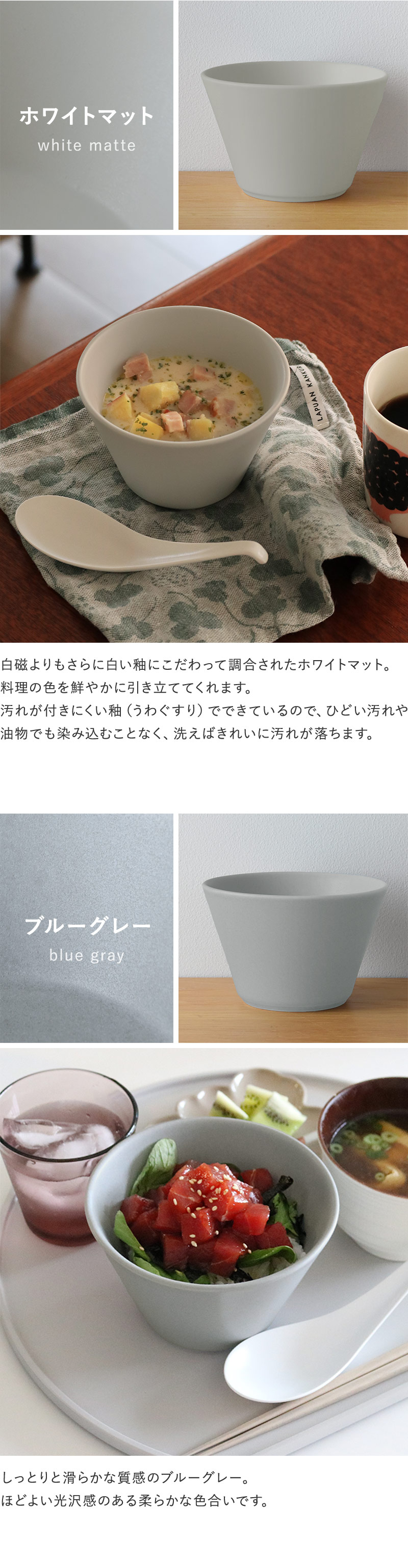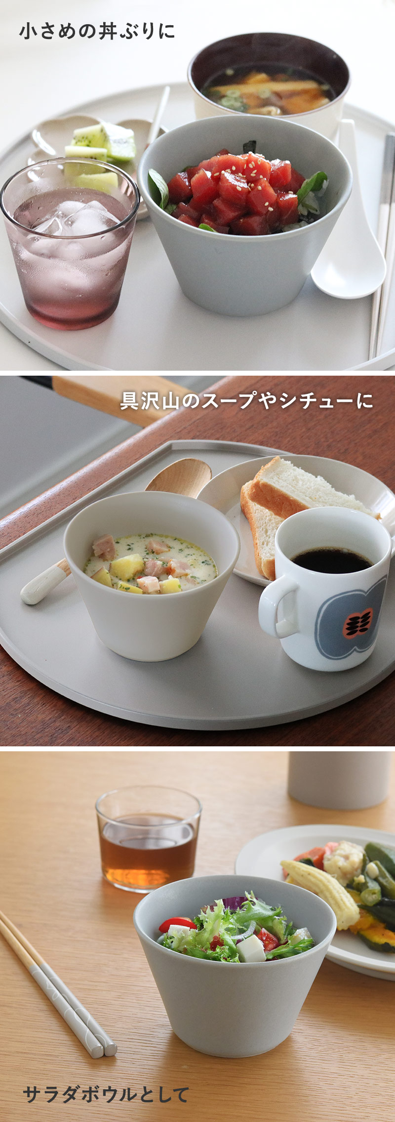 400mlのサイズ感は、具沢山のスープやシチュー、サラダやシリアル類の盛り付けにも最適。小さめの丼ぶりとしても活躍してくれます。