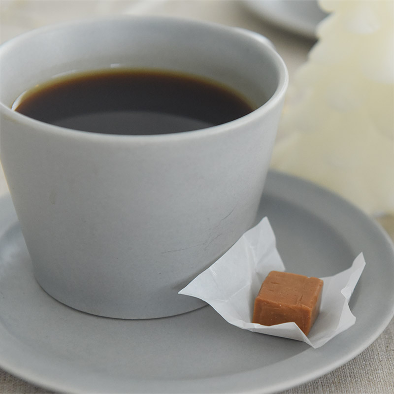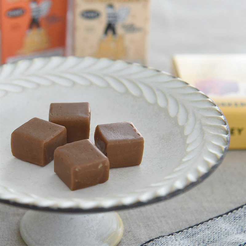 一口サイズのキャラメルはお茶菓子にもぴったり。コーヒーや紅茶に添えて癒しのティータイムを。