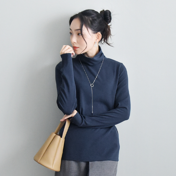 なめらかな肌触り 一枚でも着られる 吸湿発熱 あったかタートルネックカットソー/kauliina カウリーナ