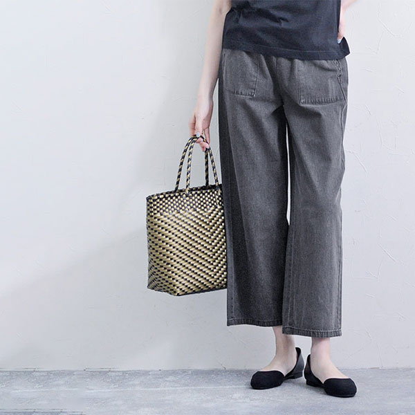 コットン100%のサラっとしたはき心地 リラックスワイドパンツ ライトデニムパンツ【送料無料】