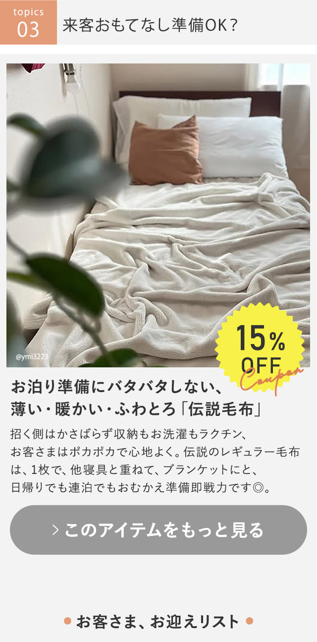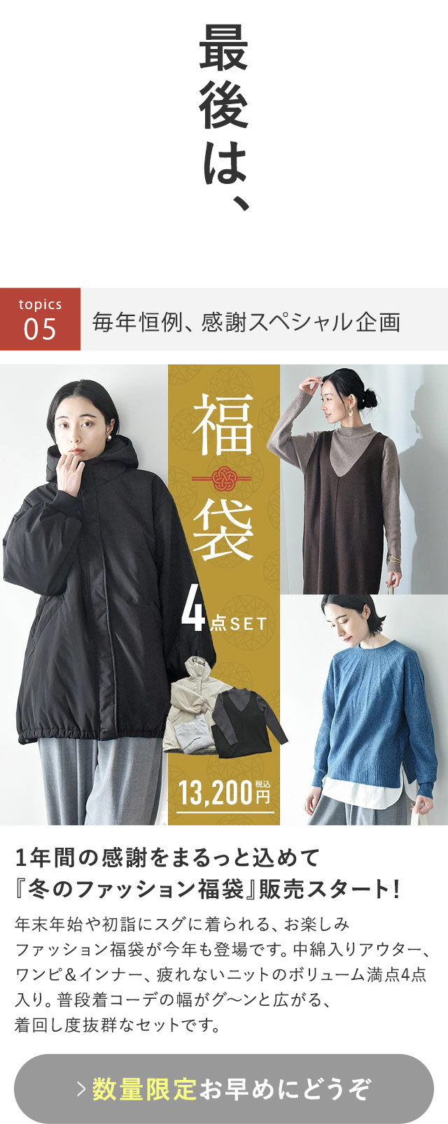 〔1〕 昼間も着っぱなし「リカバリーインナー」誕生 〔2〕 久々再入荷、クルマ用の“濡れ傘ポケット” 〔3〕 レビュー4.85高評価、寝そうになるパンツ 〔4〕 来客おむかえ準備アイテムリスト 〔5〕 年末の目玉『冬のファッション福袋』スタート!