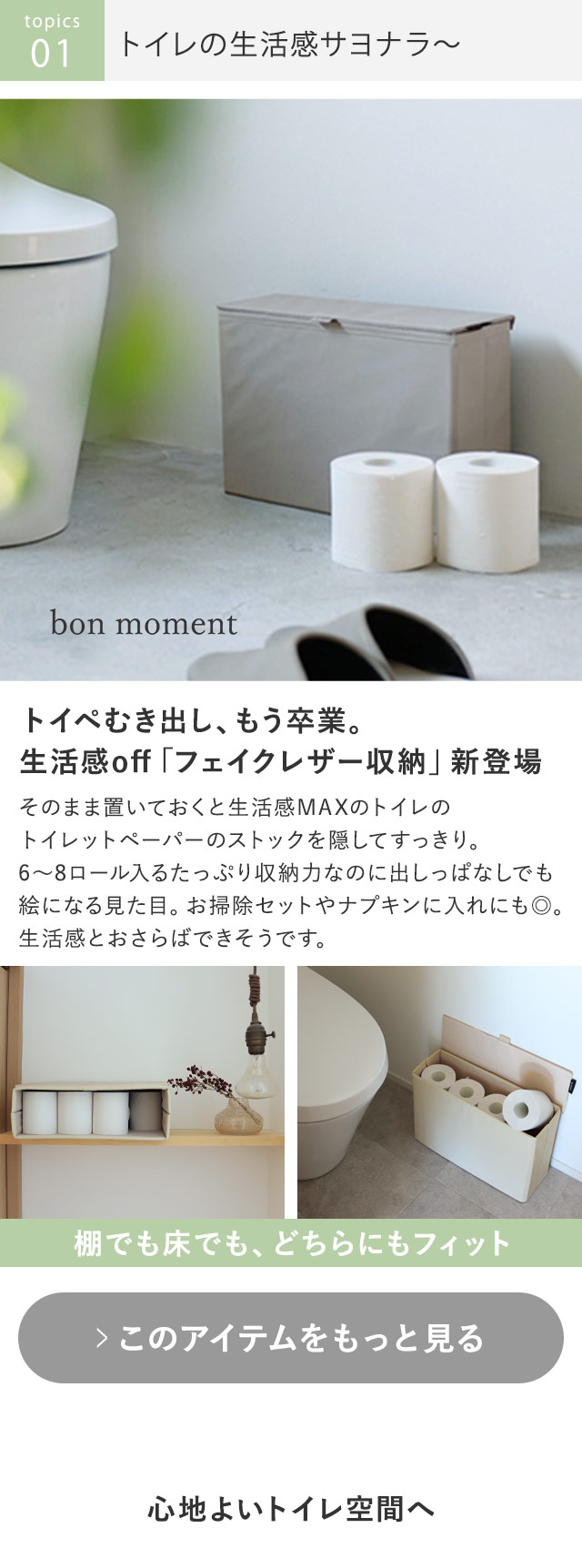 〔1〕 むき出しトイレットペーパーおさらば収納 〔2〕 食洗機曲げわっぱも、NEW3つのお弁当箱 〔3〕 林間学校、修学旅行にレインコート登場 〔4〕 お手入れボトルまるっと収納2段ラック 〔5〕 アクセ・眼鏡・ガチャ活、飾れるNEW収納~