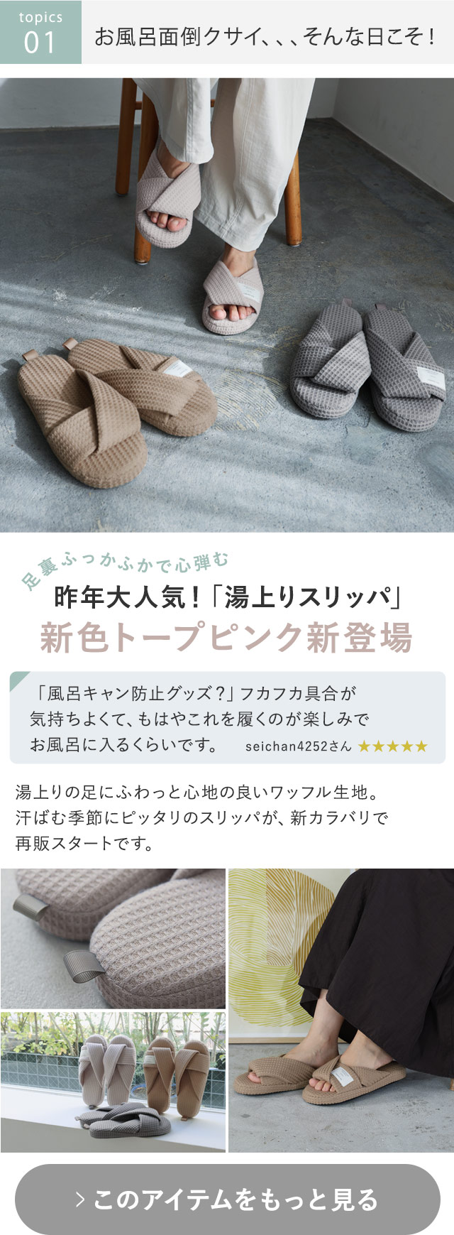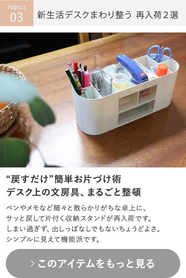 〔1〕 “風呂キャン”気分に、新色トープピンクが登場 〔2〕 お弁当の卵焼き&麦茶づくりに、新アイテム! 〔3〕 デスク整うスタンド収納、2タイプ同時再入荷 〔4〕 ついに完成!猛暑対策『強保冷』シリーズ