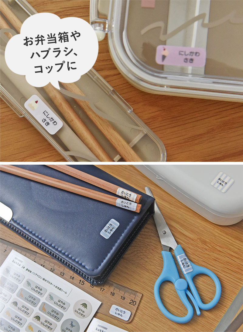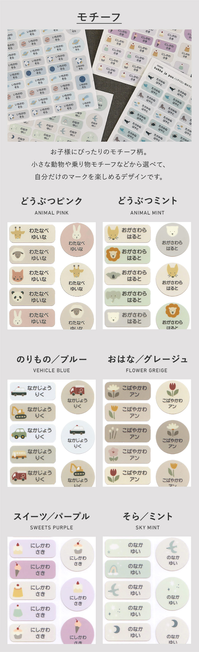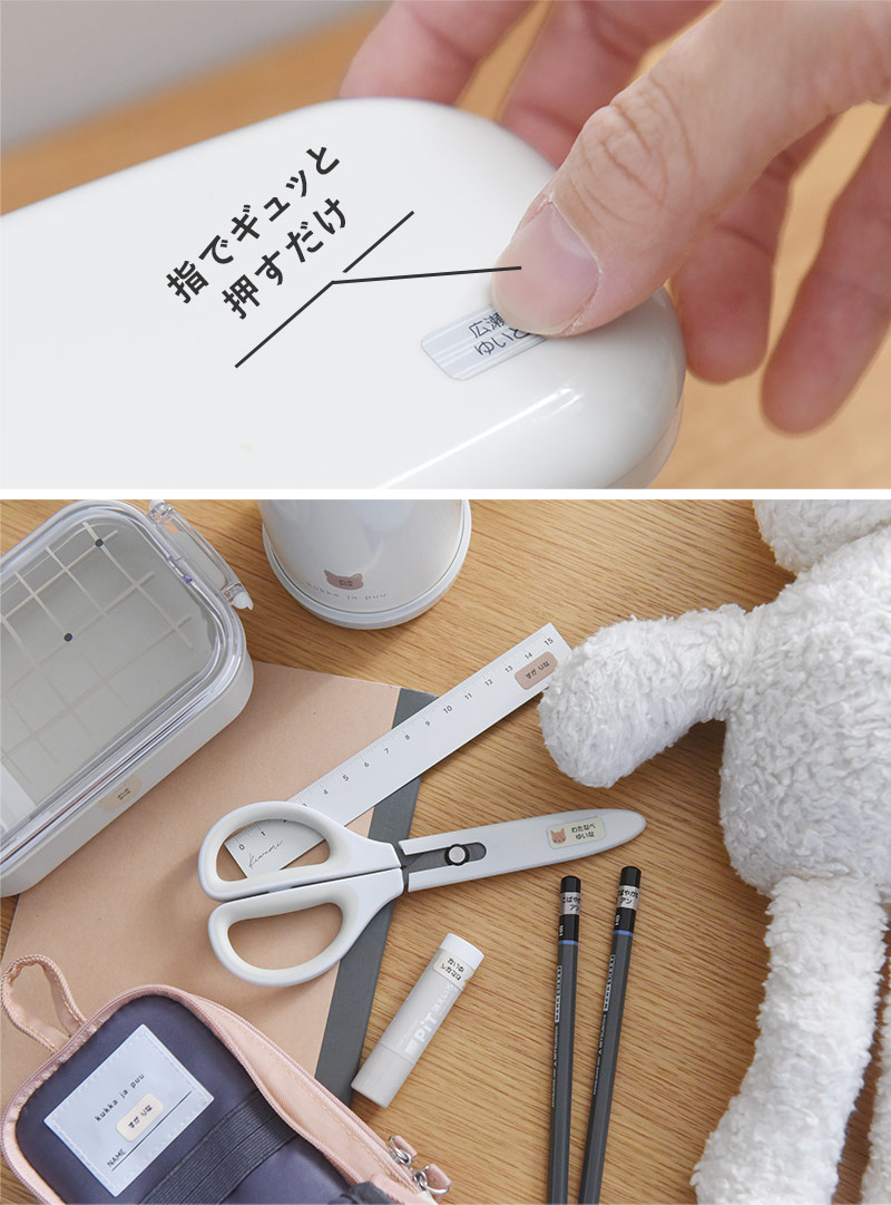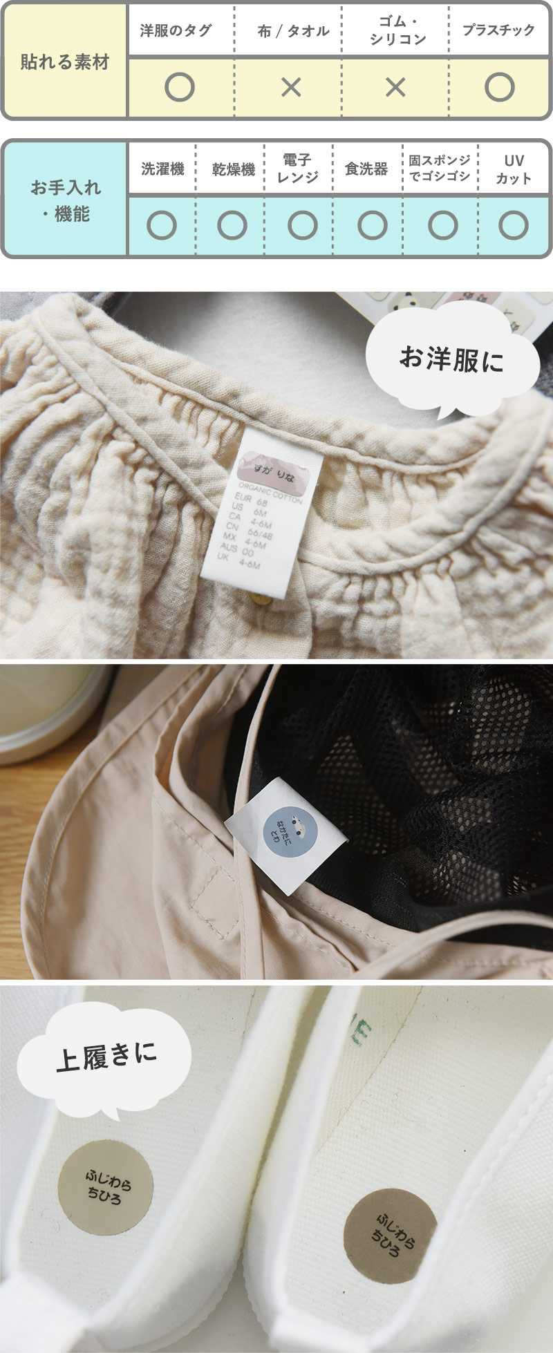- 衣類のタグや上履き、おもちゃにも、ギュッと押すだけでしっかり接着するお名前シール。アイロン不要なのに洗濯機もOK。アンジェオリジナルのカラーです。
