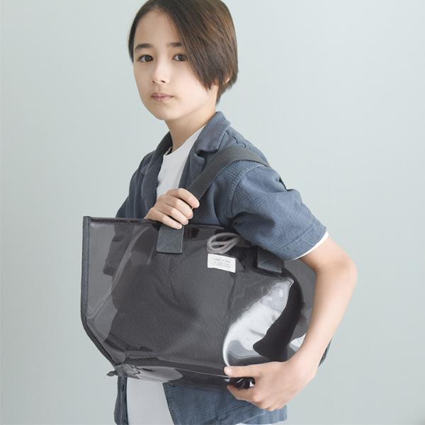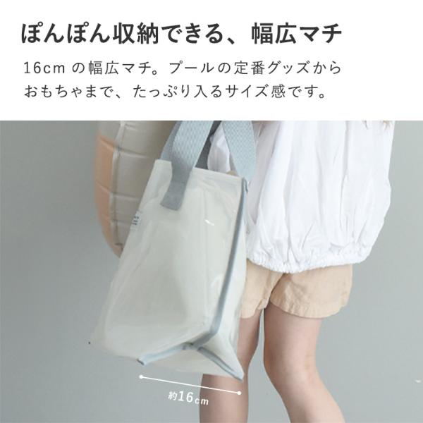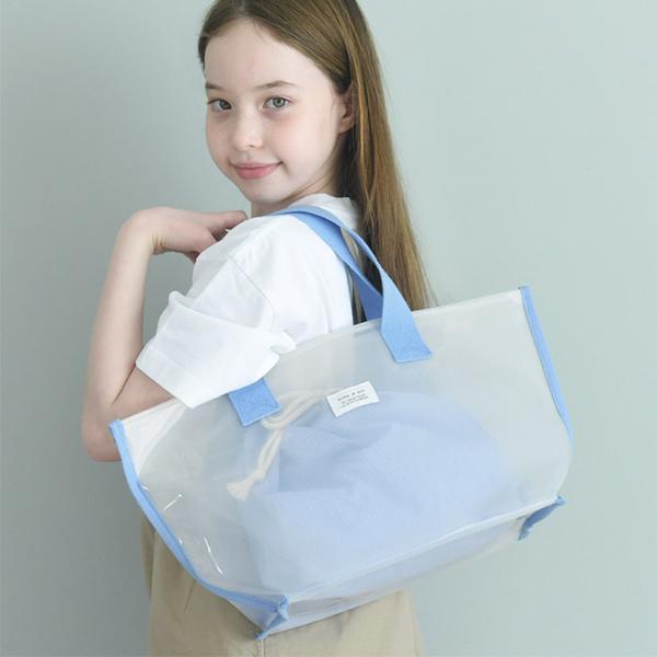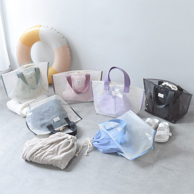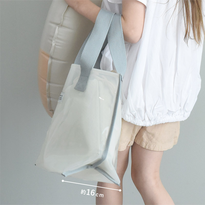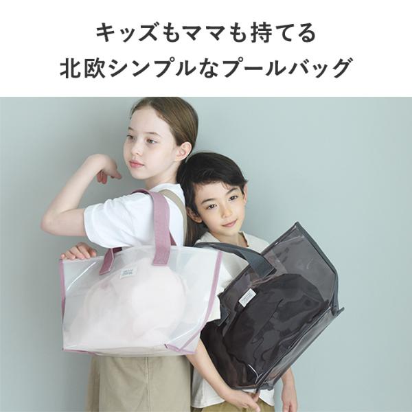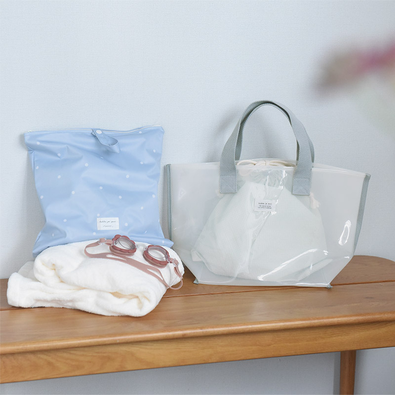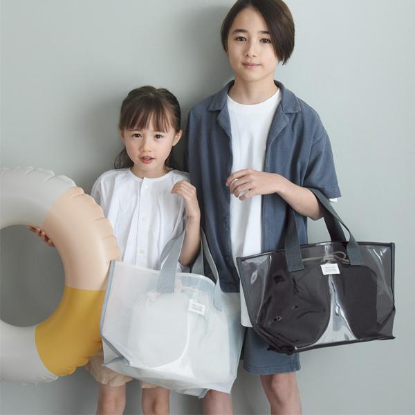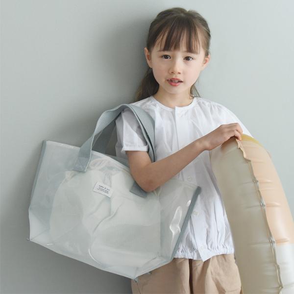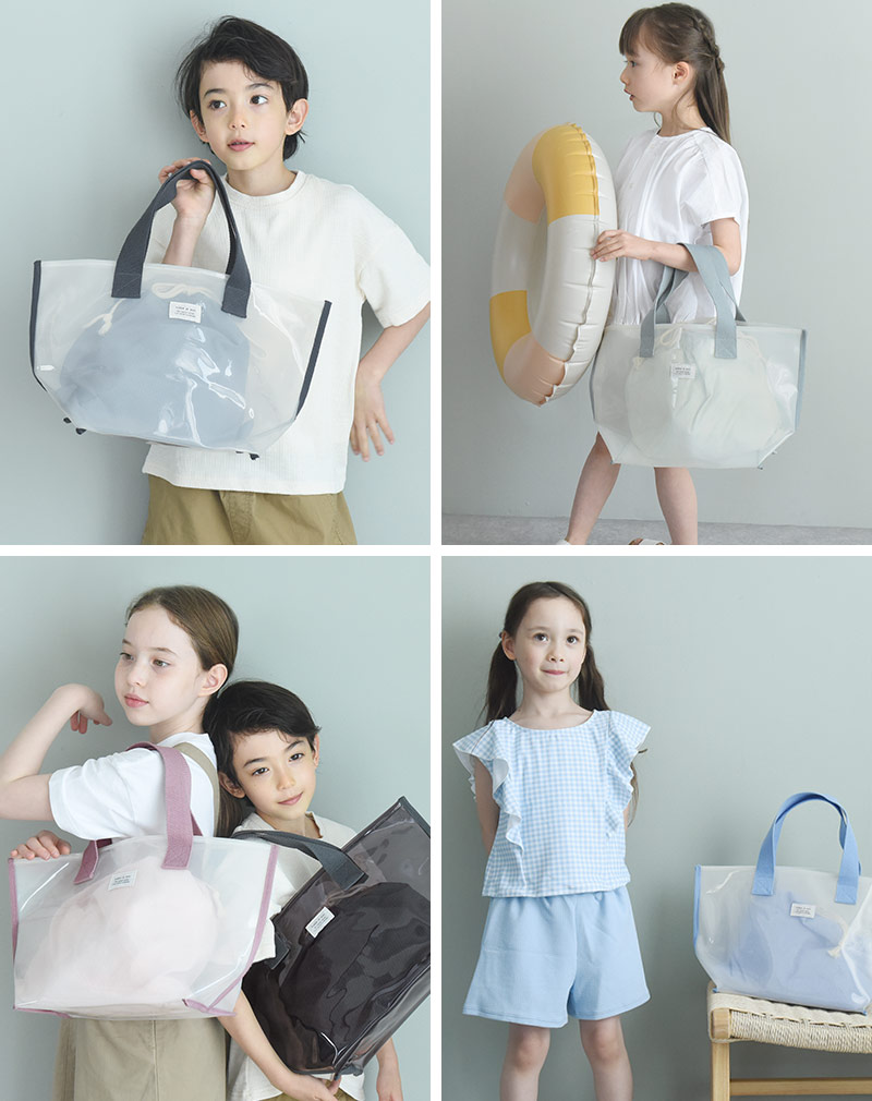 - 涼し気な半透明の子ども用プールバッグ。幅広マチでたっぷり入り、デザインもシンプルな北欧風なので、ママバッグとしても使えます。