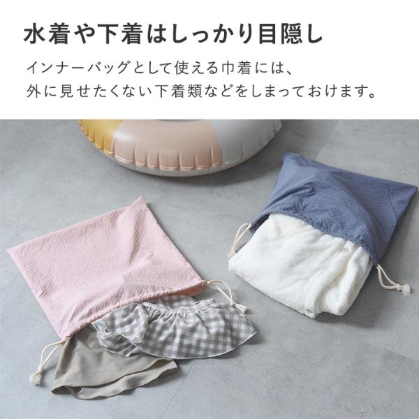 インナーバッグとして使える巾着には、外に見せたくない下着類などをしまっておけます。ママバッグとしてお使いの際は、お財布やスマホなど貴重品入れに◎。
