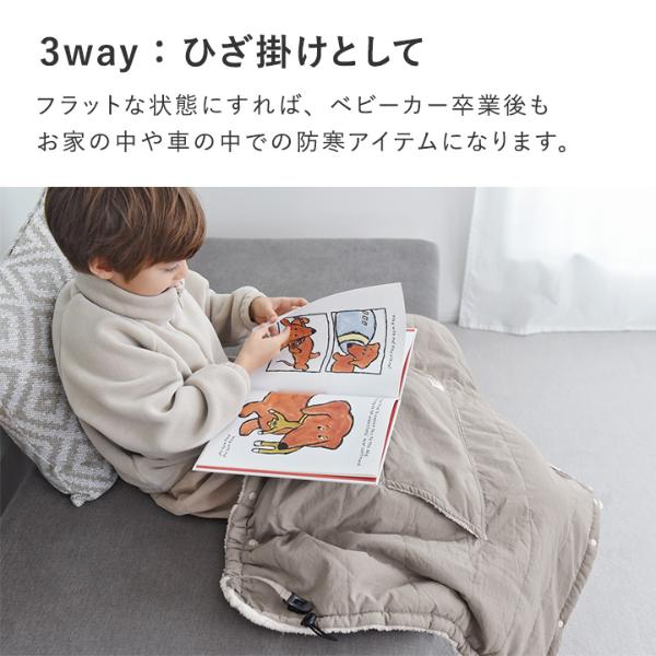 ベビーカー卒業後はお家の中や車の中での防寒アイテムになります。