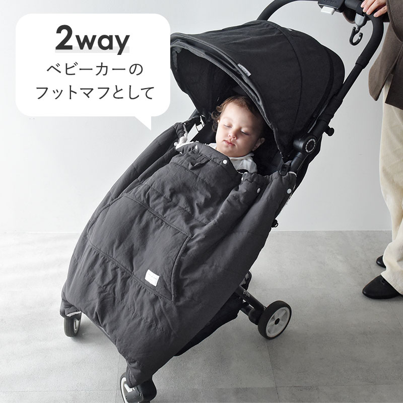 ベビーカーに取り付ければ、身体をすっぽり覆うフットマフとして◎。