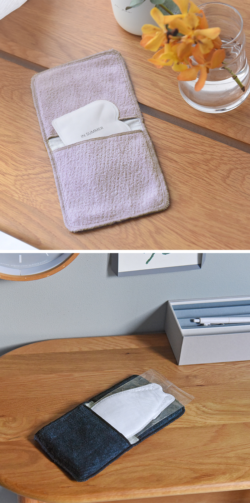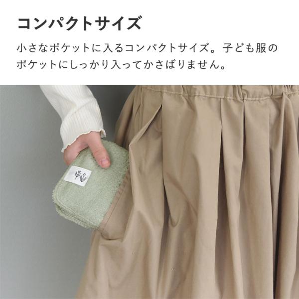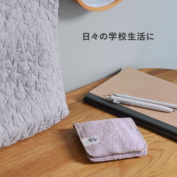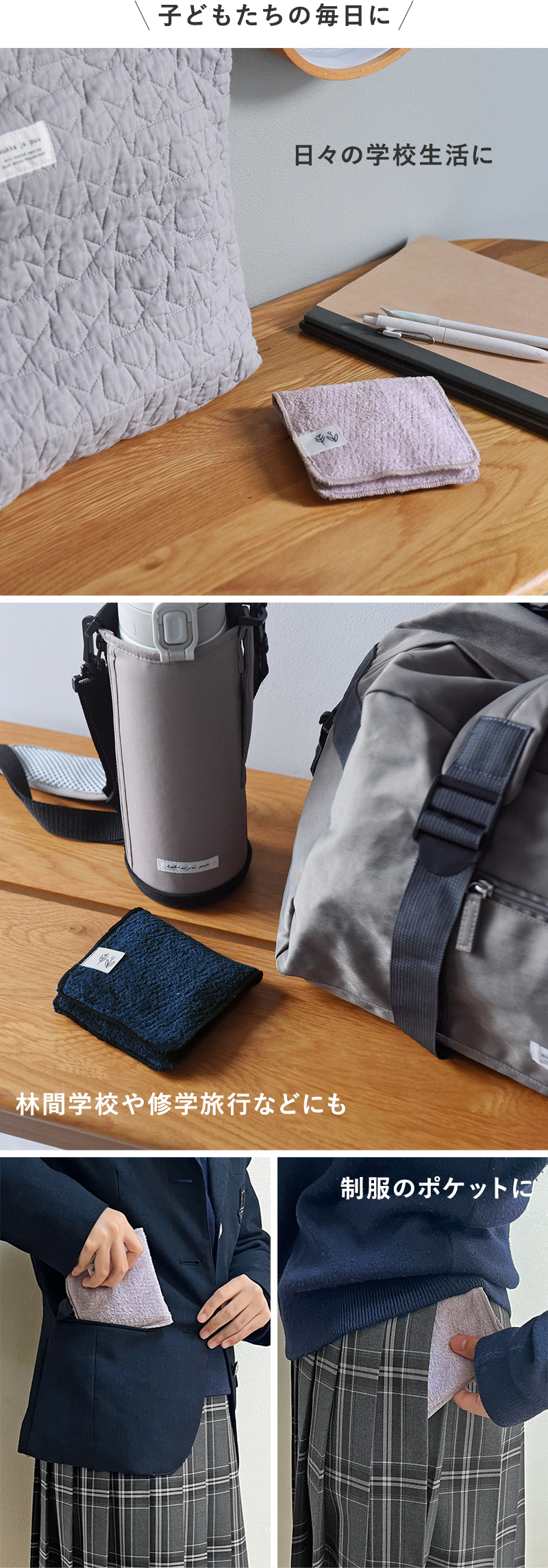- 日常使いできるタオルハンカチでありながら、ナプキンを入れられてサニタリーポーチとしての役割も。学校生活や宿泊行事などで活躍するコンパクトサイズのハンカチポーチです。