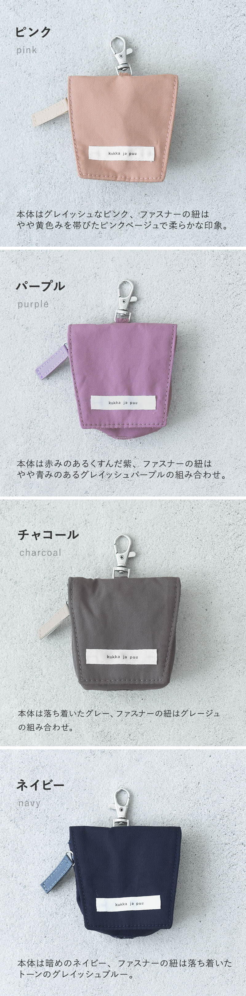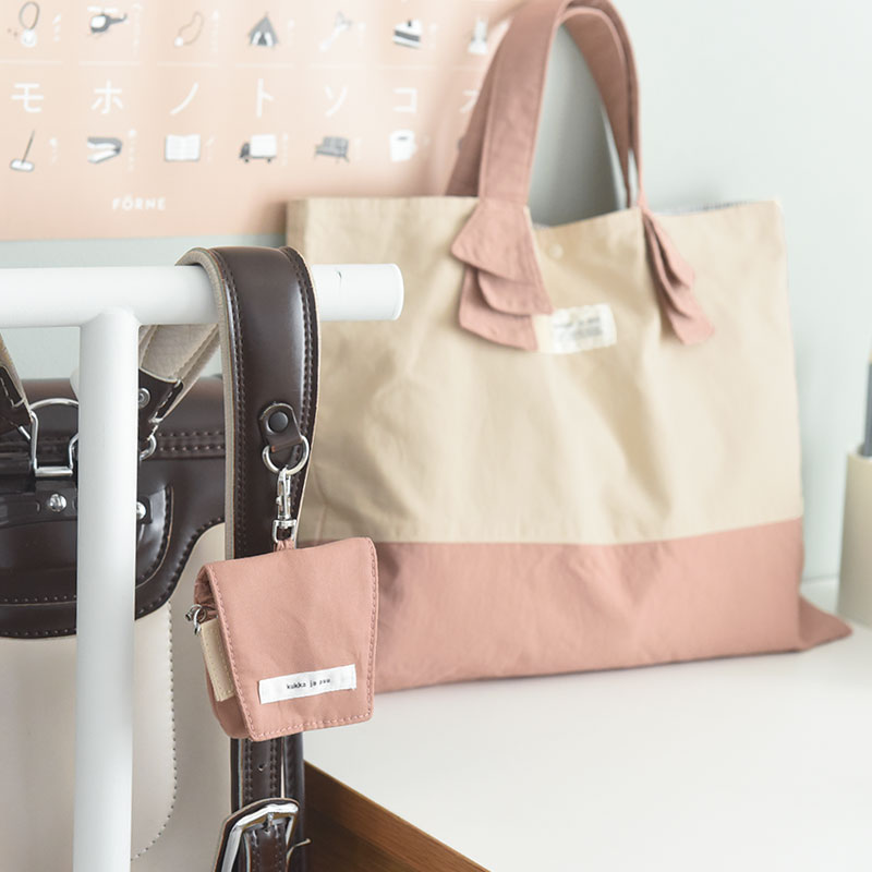 kukka ja puuでは同じ素材の生地を使ったアイテムを展開しています。同じカラーや近いカラーで組み合わせれば、キッズの持ち物の統一感もアップ。シリーズでのコーディネートをお楽しみいただけます。
