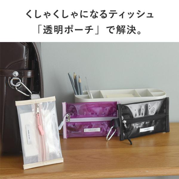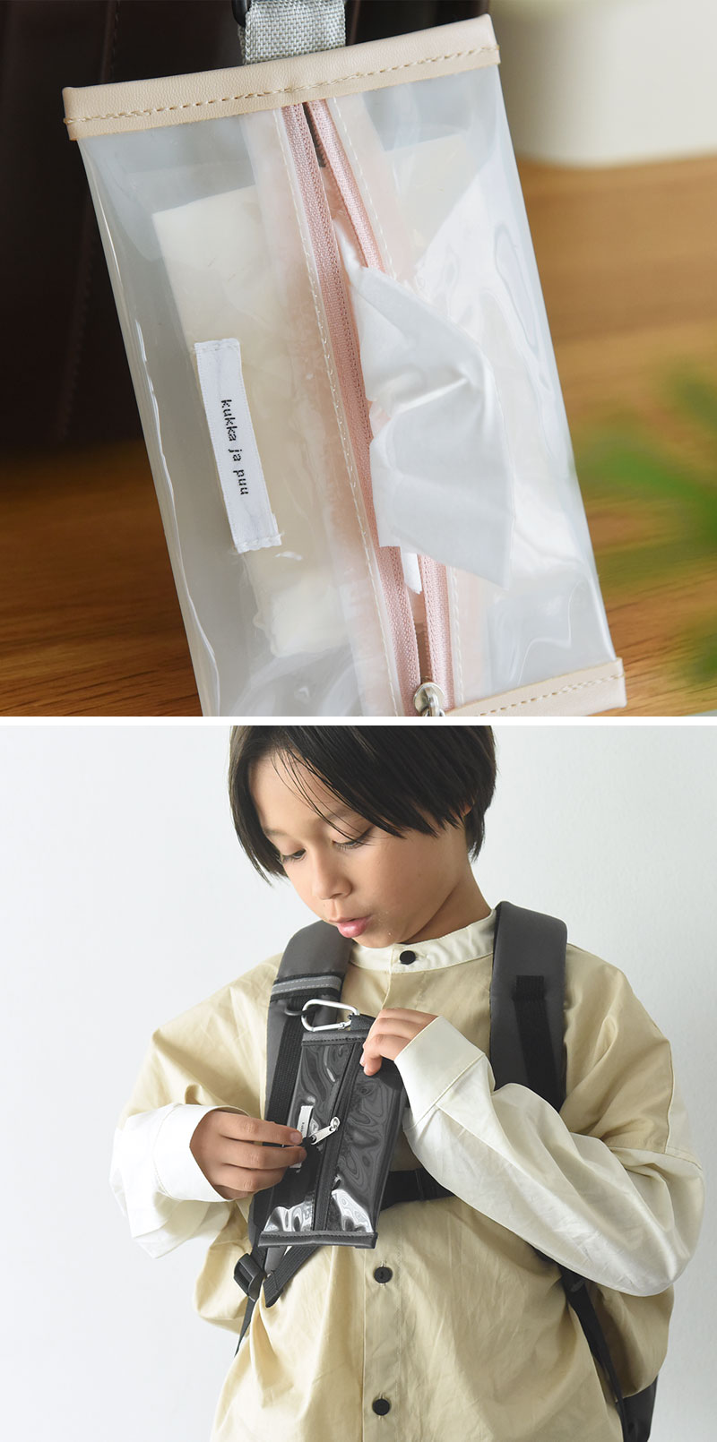 - 丈夫なPVC素材で作られていて、デリケートなポケットティッシュをしっかりと守ってくれます。キッズのためのティッシュお守り、透明ポーチです。