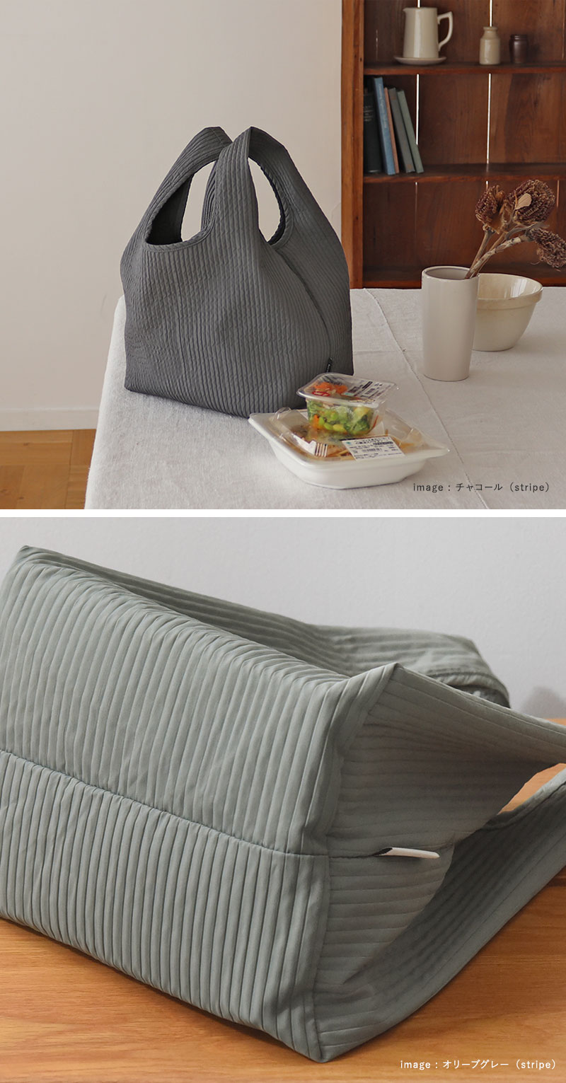 そんなシーンで役立つのが、bon moment(ボンモマン)の「ずれにくいエコバッグ」。その名の通り、中に入れたものがズレたり傾いたりしにくく、お弁当などを持ちやすいように設計されました。