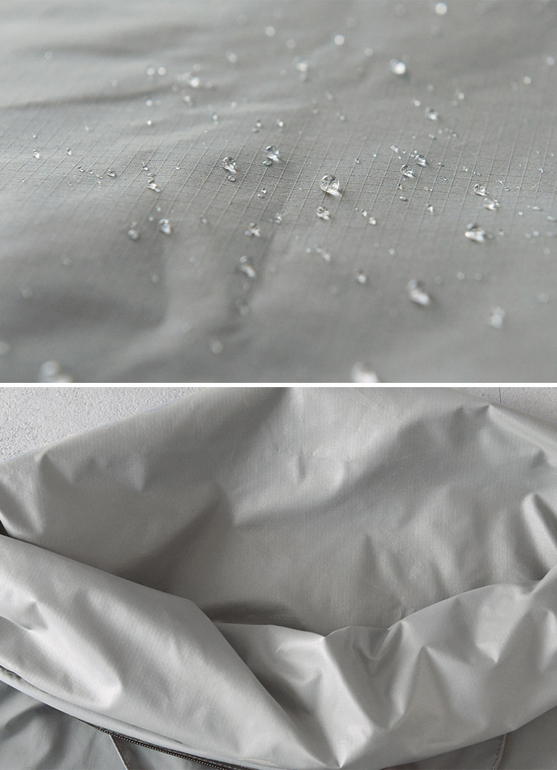 水をはじく撥水加工本体素材に撥水加工を施していることで、水を弾き雨から守ります。また、裏側には水を通さないコーティングをしていることで安心感アップ。