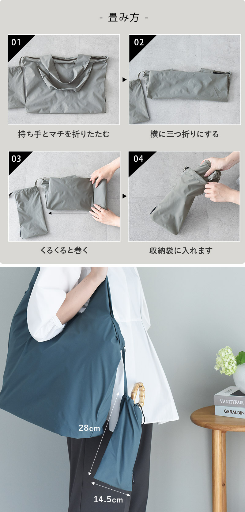 また、使わない時は折り畳んでおけるパッカブル仕様だから、持ち歩きも◎。通勤だけでなく、普段のお出掛けも旅行も、ブラックは冠婚葬祭にも、様々なシーンで活躍してくれます。