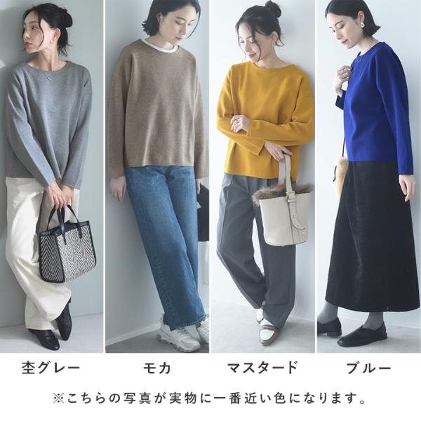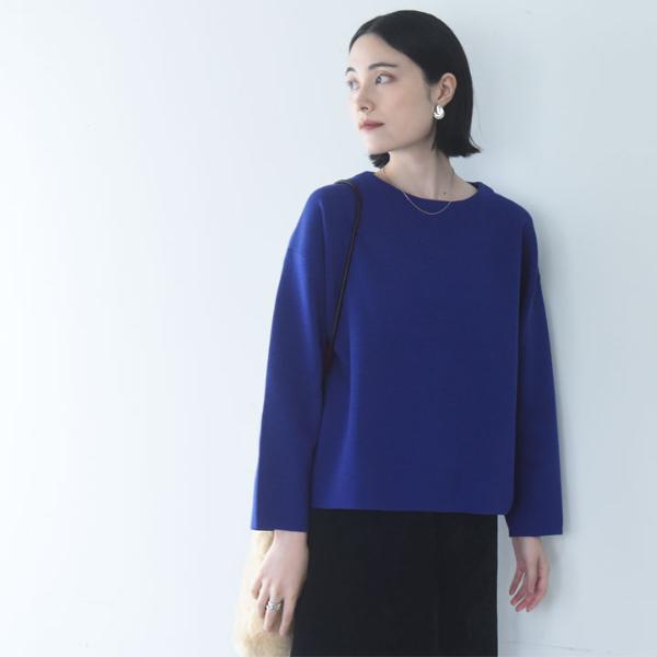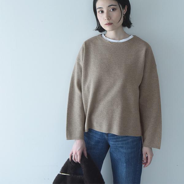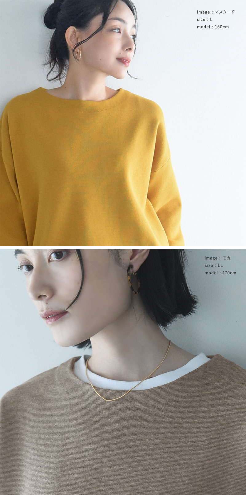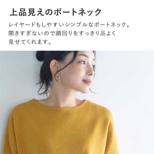 上品見えのボートネックレイヤードもしやすいシンプルなボートネック。開きすぎないので顔回りをすっきり品よく見せてくれます。