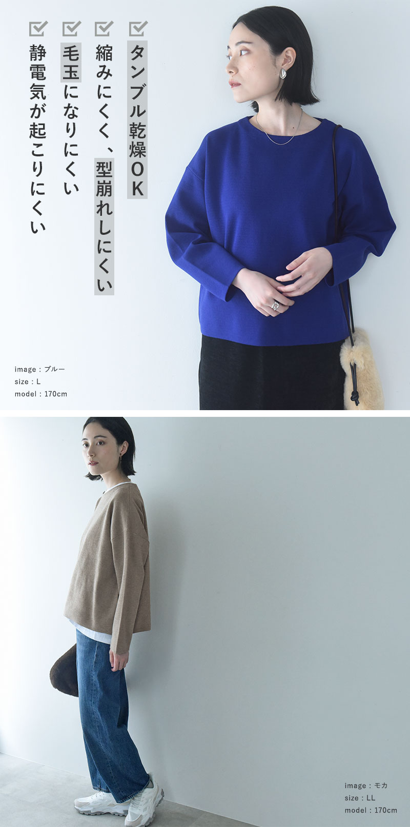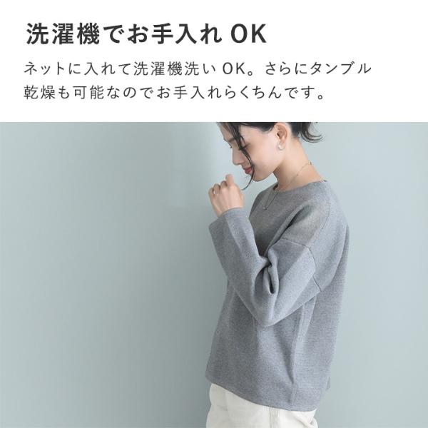 洗濯機でお手入れOKお手入れが大変なイメージのあるニットですが、こちらはネットに入れて洗濯機洗いOK。さらにタンブル乾燥も可能なのでお手入れらくちんです。