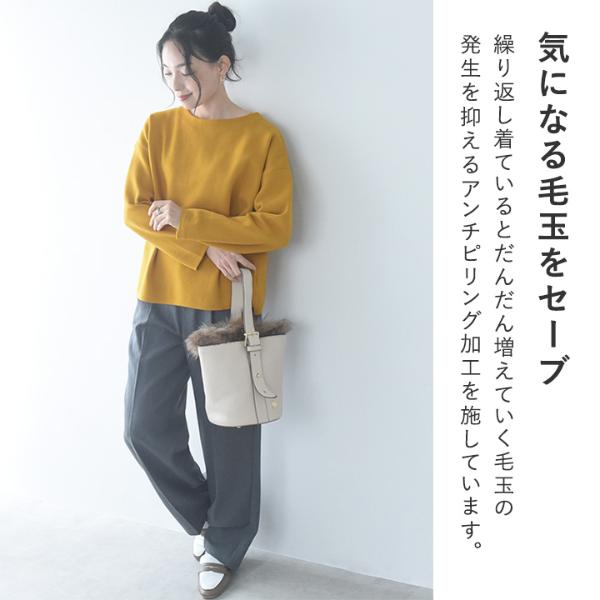 気になる毛玉をセーブ繰り返し着ているとだんだん増えていく毛玉。こちらは、そんな毛玉の発生を抑えるアンチピリング加工を施しています。