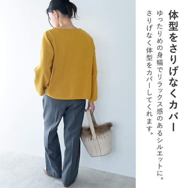 体型をさりげなくカバーゆったりめの身幅でリラックス感のあるシルエットに。ウエスト周りなどさりげなく体型をカバーしてくれます。
