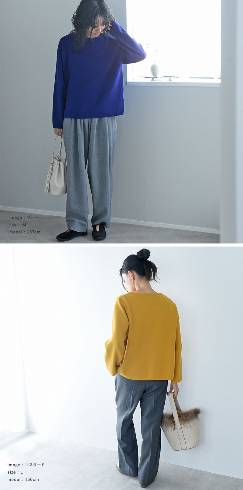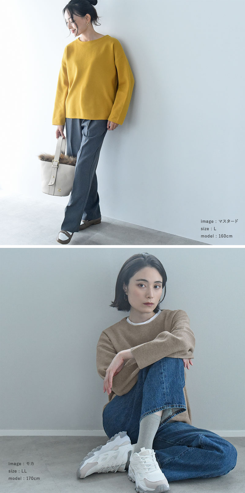ややコンパクトなサイズ感のため、カジュアル派さんは大きめ、すっきり派さんは普段のお洋服と同じサイズがおすすめです。