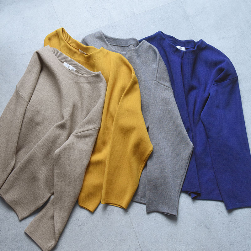 しっかりとした素材感とフラットな編み目が特徴のミラノリブですが、こちらは特殊な糸を編み立てた一着。「ニット=重い」というイメージを一新、軽やかな着心地を実現しています。
