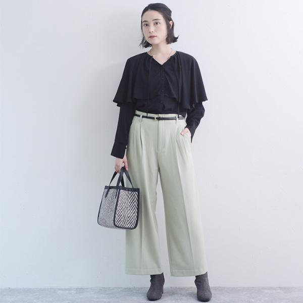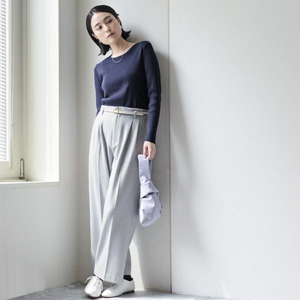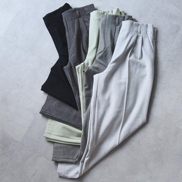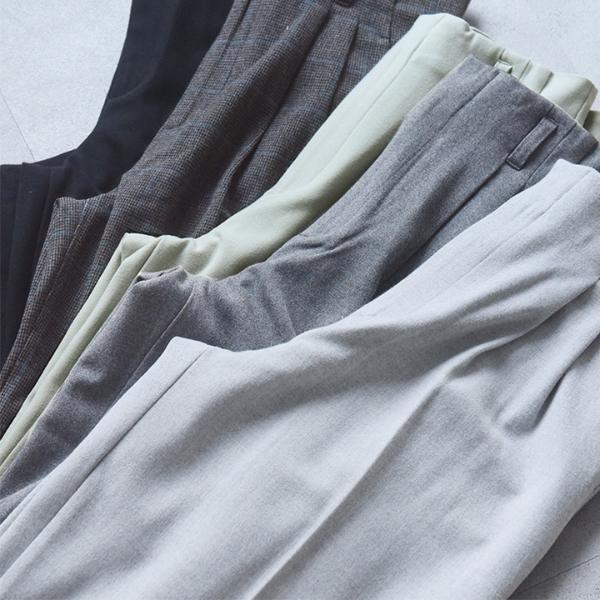 フロントに入った2つのタックと、ワイドシルエットで腰回りも上手にカバー。バリエーション豊かな5カラーで、お仕事コーデからきれいめカジュアルまで、様々なコーデをお楽しみいただけます。
