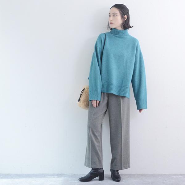 くすんだミントのような明るいグリーン。暗くなりがちな秋冬コーデの差し色になります。