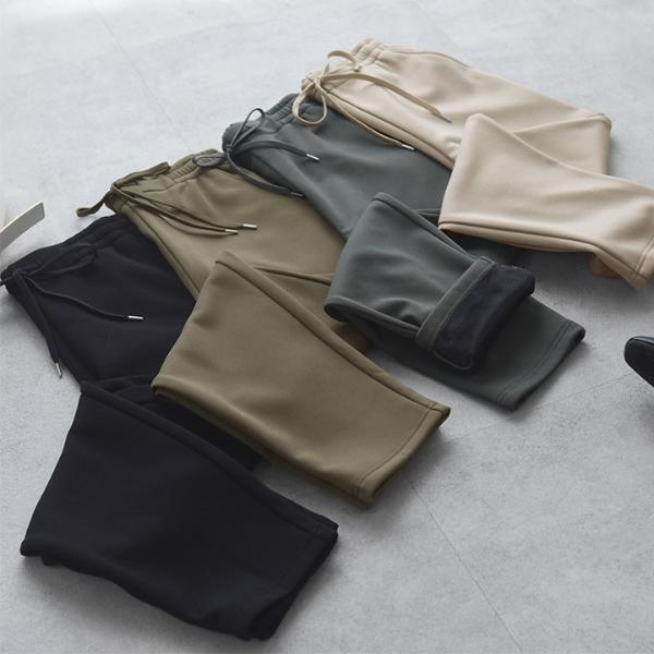 裏ベロアで暖かい、リラックス気分で穿けるテーパードシルエットのストレッチパンツ。旅行やレジャーなどアクティブシーンだけでなく、キチンとしたい1日にも着られる1枚。