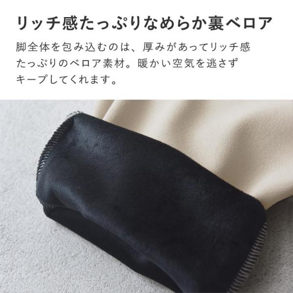 脚全体を包み込むのは、厚みがあってリッチ感たっぷりのベロア素材。暖かい空気を逃さずキープしてくれます。