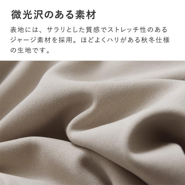 表地には、サラリとした質感でストレッチ性のあるジャージ素材を採用。ほどよくハリがある秋冬仕様の生地です。