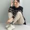 ライトベージュのような発色の明るいカラー。コーデが軽やかな印象に。