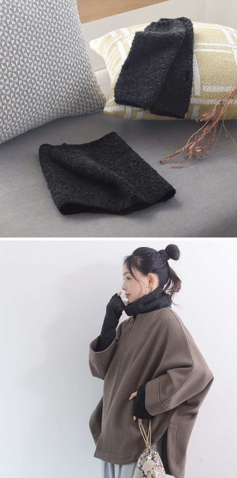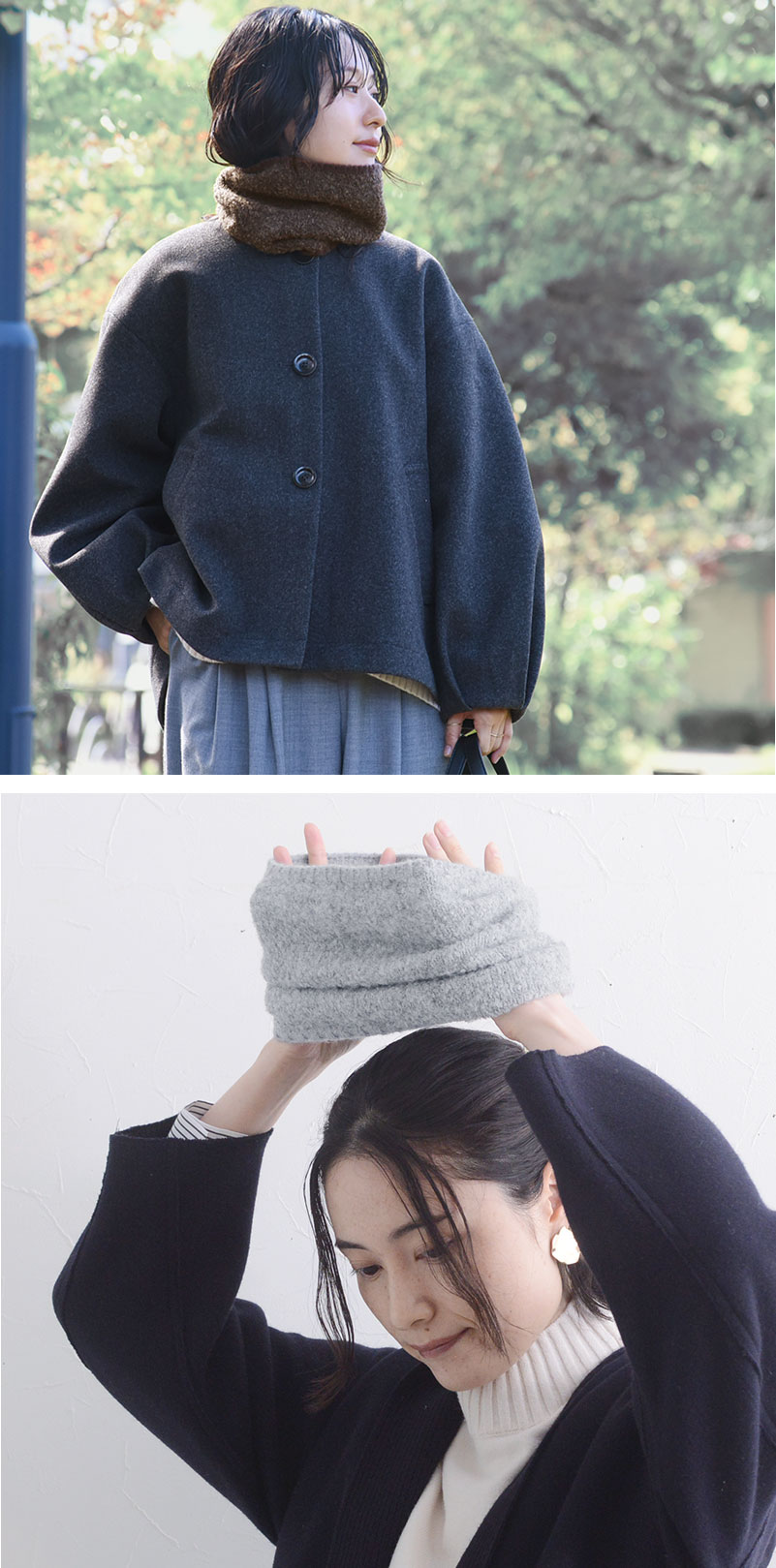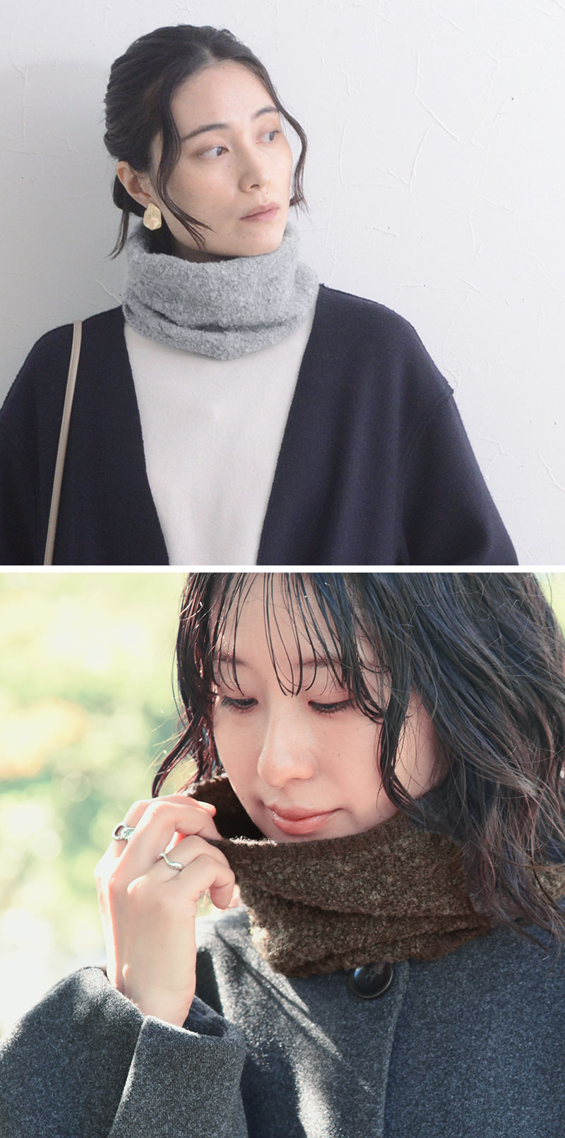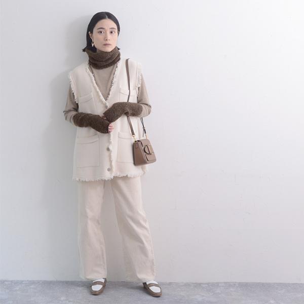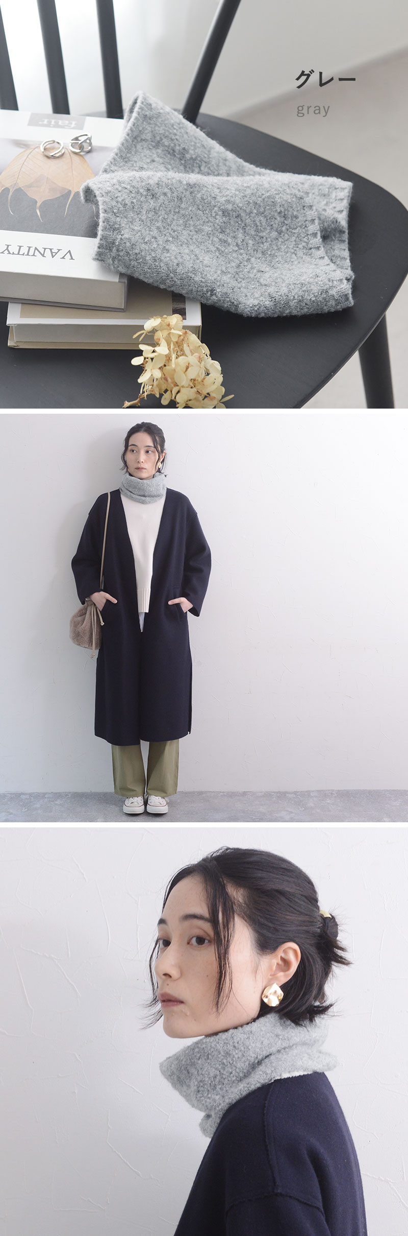 - 温もり逃がさずあったかい、ニット見えのネックウォーマーです。もこもこブークレ素材でウォーム感たっぷり。防寒しながら冬のおしゃれを叶えます。