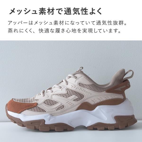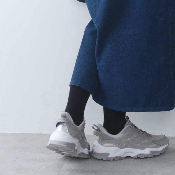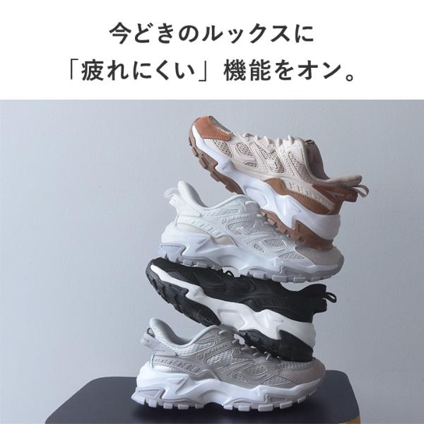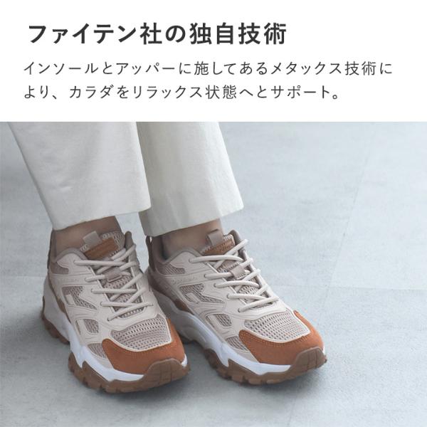 トップアスリート御用達「ファイテン社」独自の技術を使った、疲れにくいスニーカー。こちらは、ややボリューム感のあるトレンドライクな一足です。