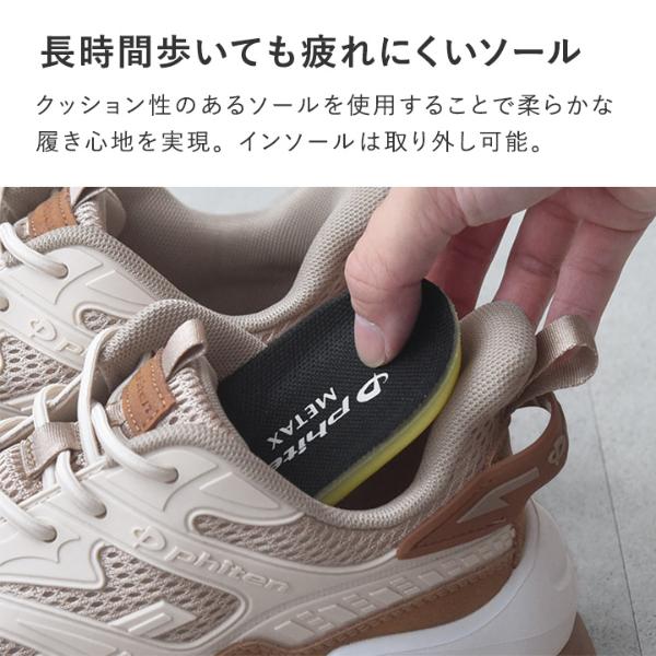 トップアスリートにも親しまれているファイテン社の技術を用いたスニーカー。インソールとアッパーに施してあるメタックス技術により、カラダをリラックス状態へとサポート。余計な負荷をかけず歩行を助けてくれます。