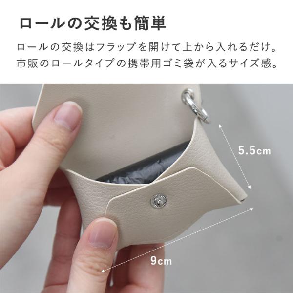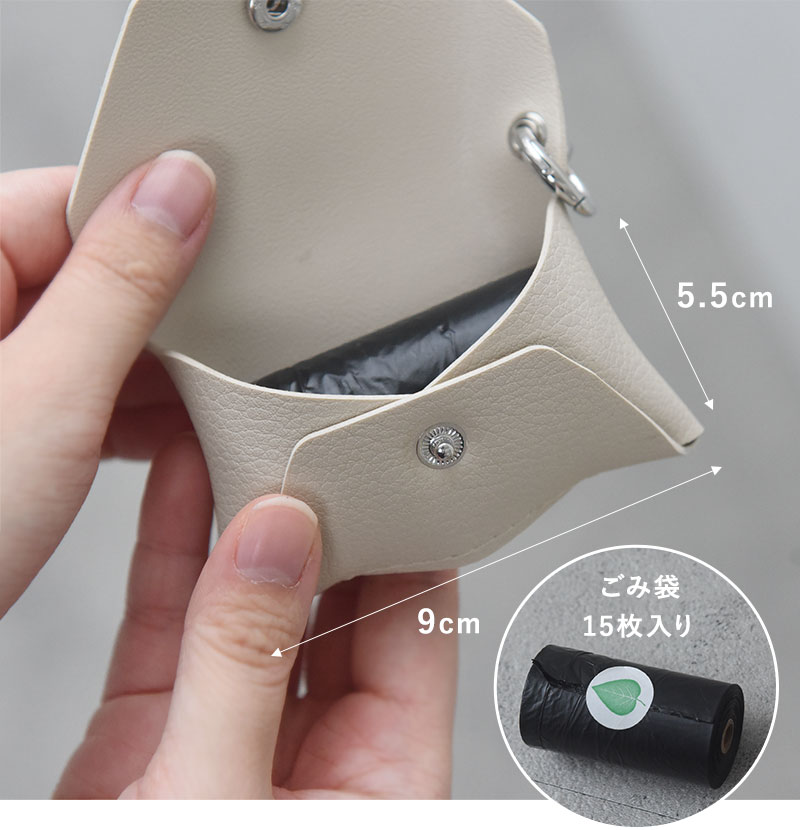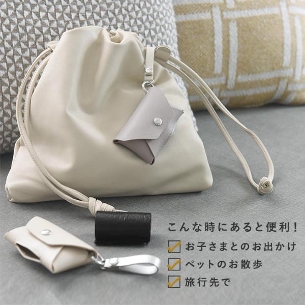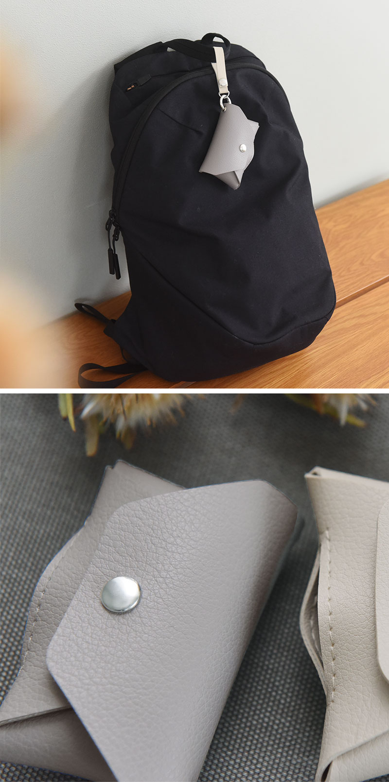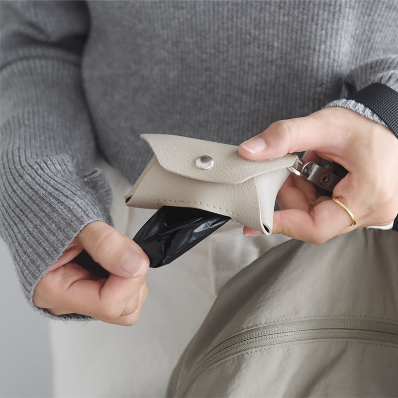 そのまま持って出かけるとどうしても生活感が出てしまうゴミ袋。こちらは一見何が入っているか分からないポーチタイプなので、バッグにアクセ感覚でつけていただけます。